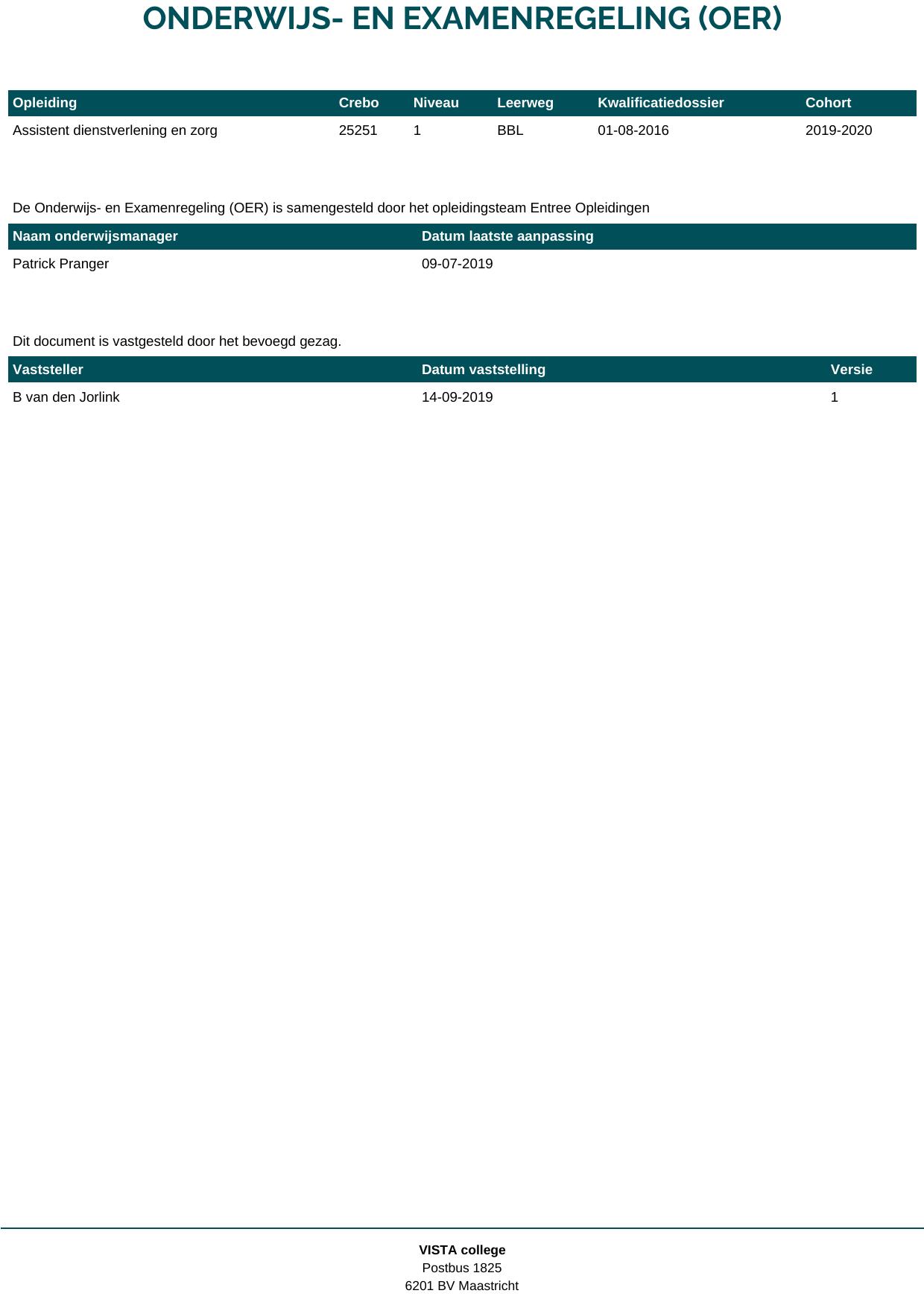Assistent dienstverlening en zorg CON 25251O1SC in cohort 2019-2020