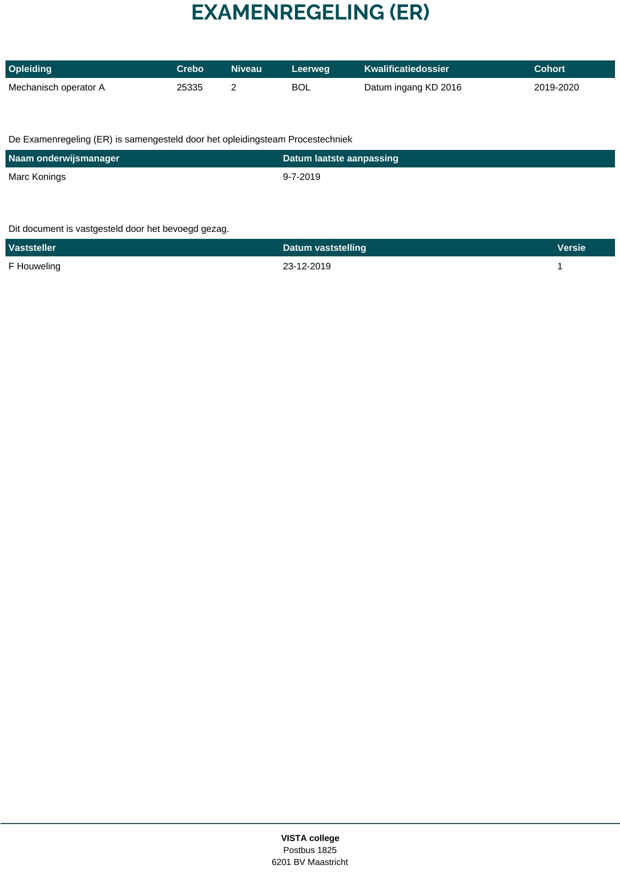 Mechanisch operator A 25335O1S in cohort 2019-2020