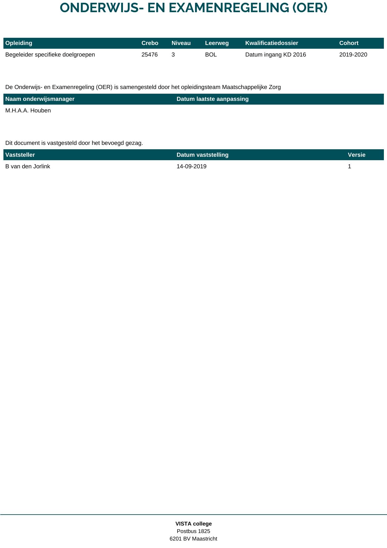 Begeleider specifieke doelgroepen (Combi MZ-IG VVT) 25476O2S in cohort 2019-2020