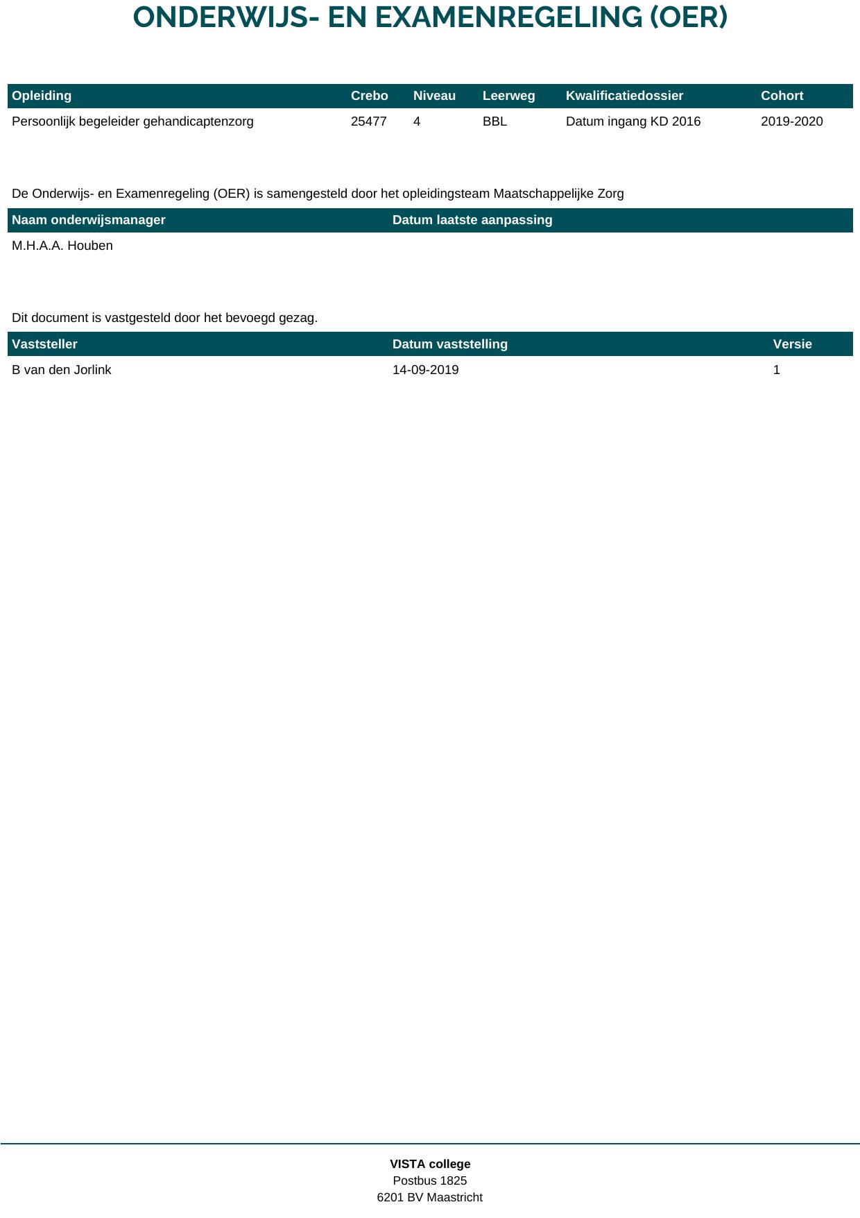 Persoonlijk begeleider gehandicaptenzorg 25477B1S in cohort 2019-2020