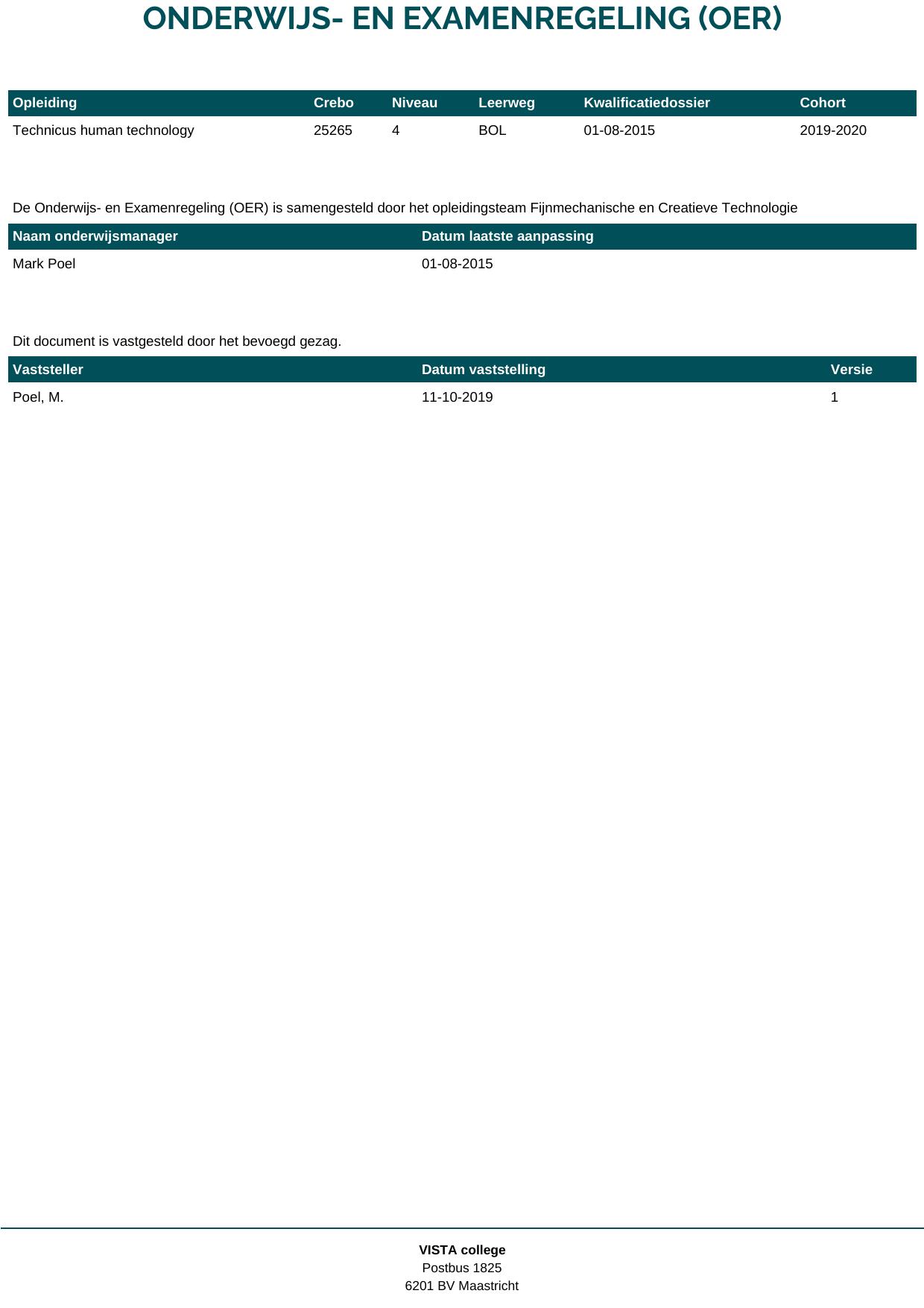 Technicus human technology 25265O1S in cohort 2019-2020