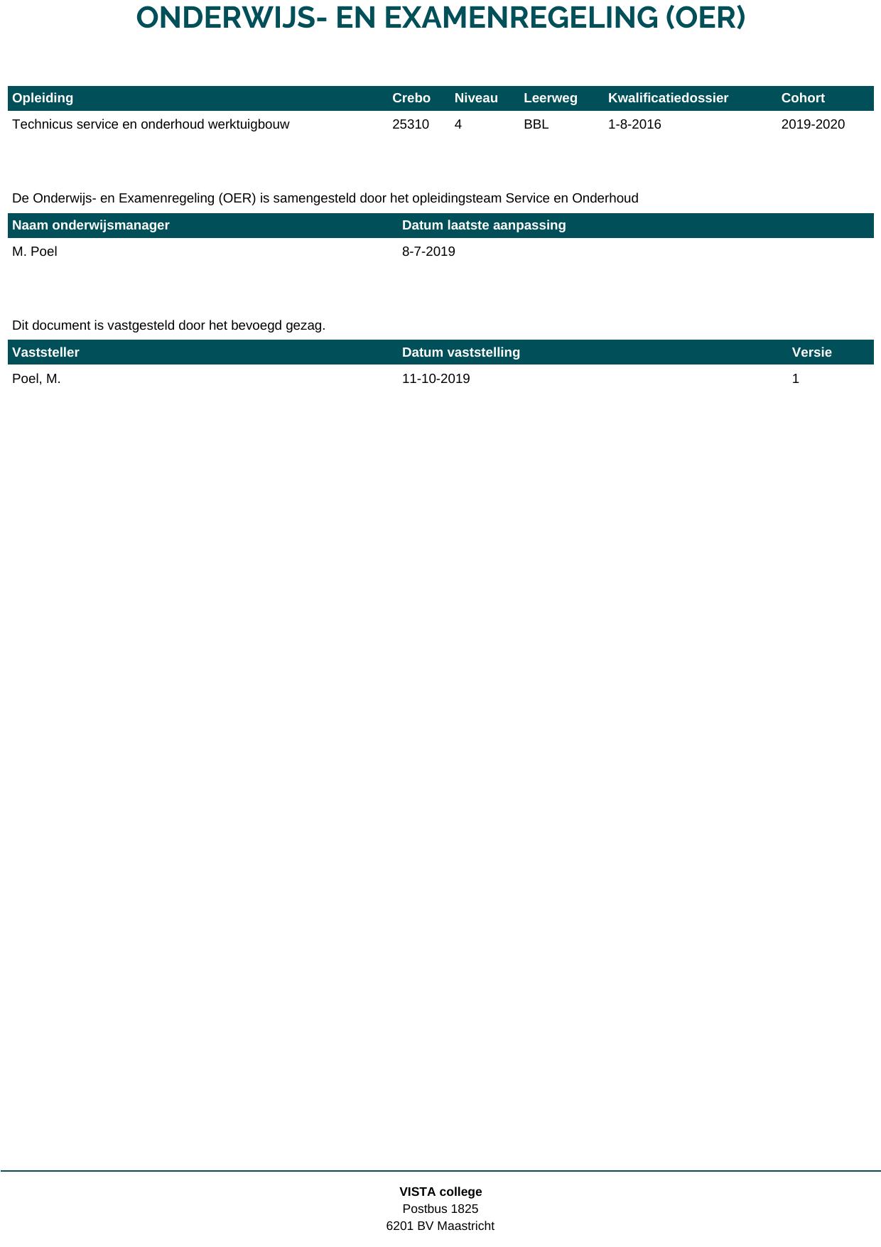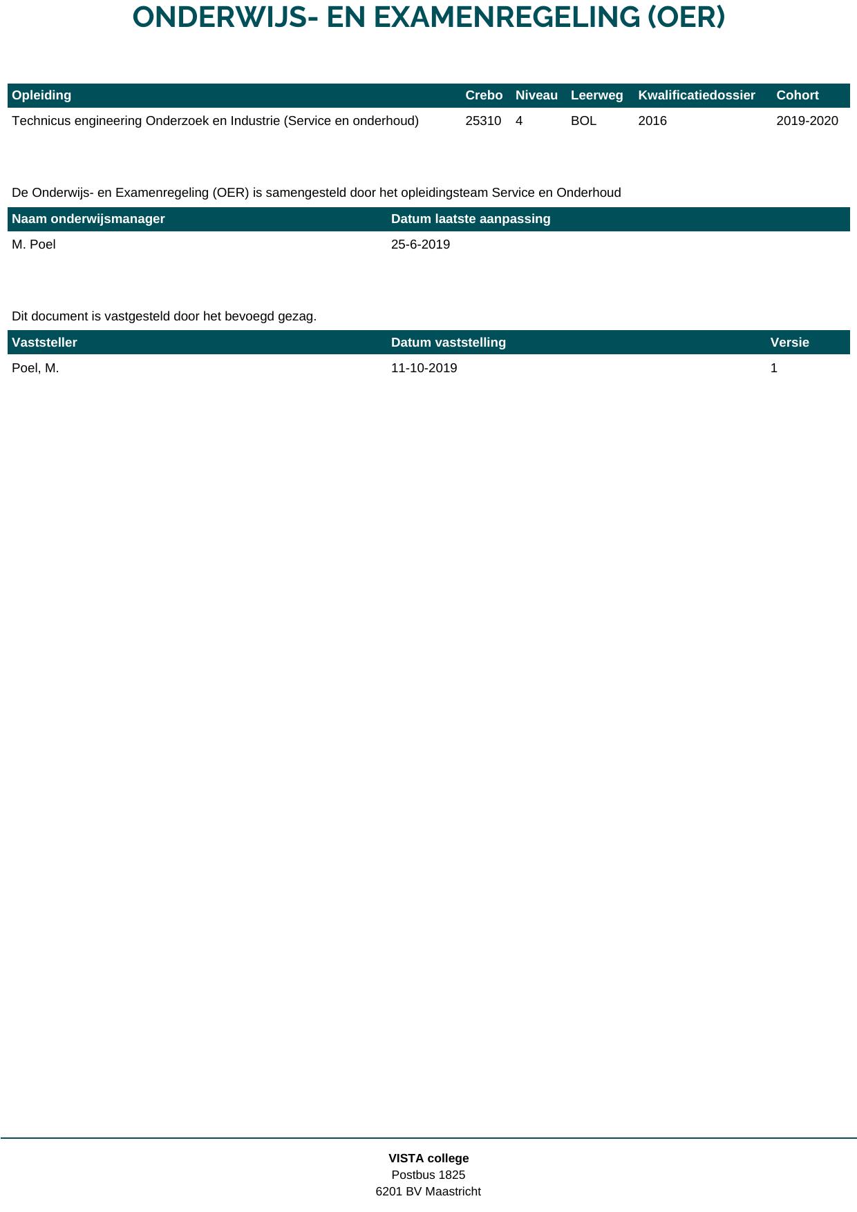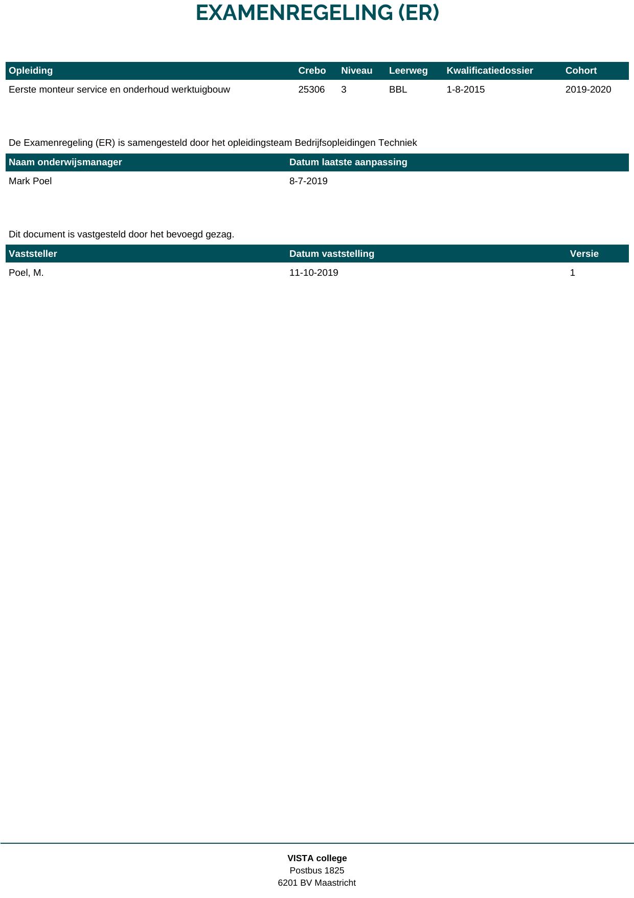 Technicus service en onderhoud werktuigbouw 25310B1S in cohort 2019-2020
