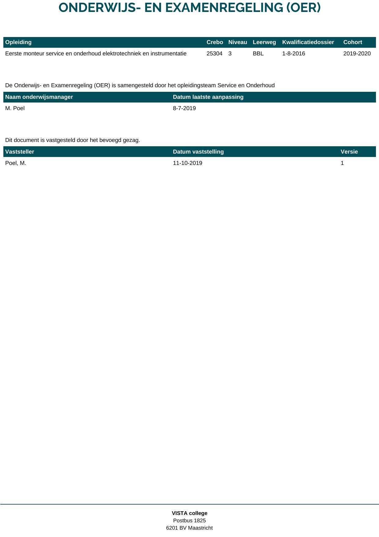 Technicus service en onderhoud elektrotechniek en instrumentatie 25309B1E in cohort 2019-2020