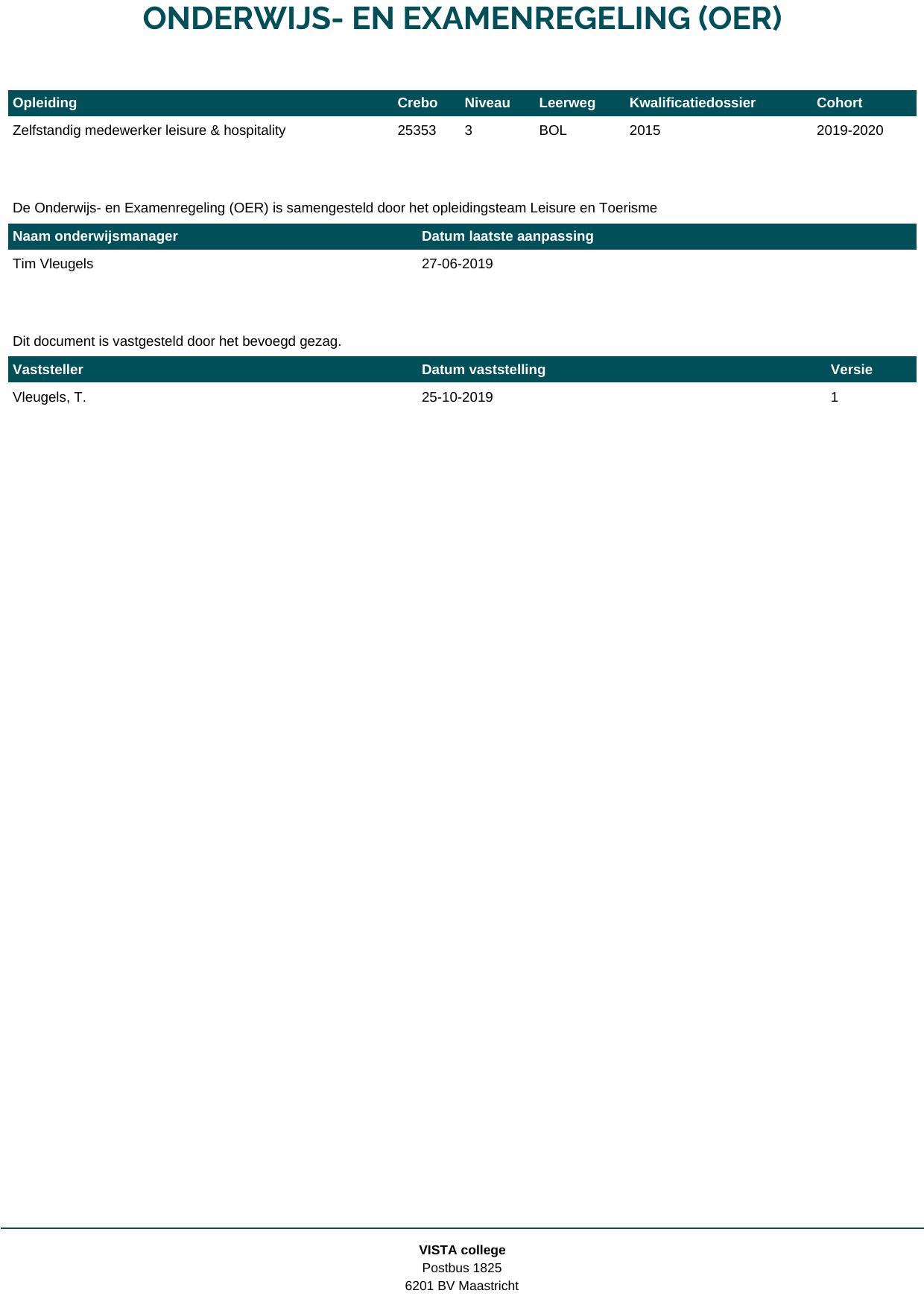Zelfstandig medewerker leisure & hospitality 25353O1S in cohort 2019-2020