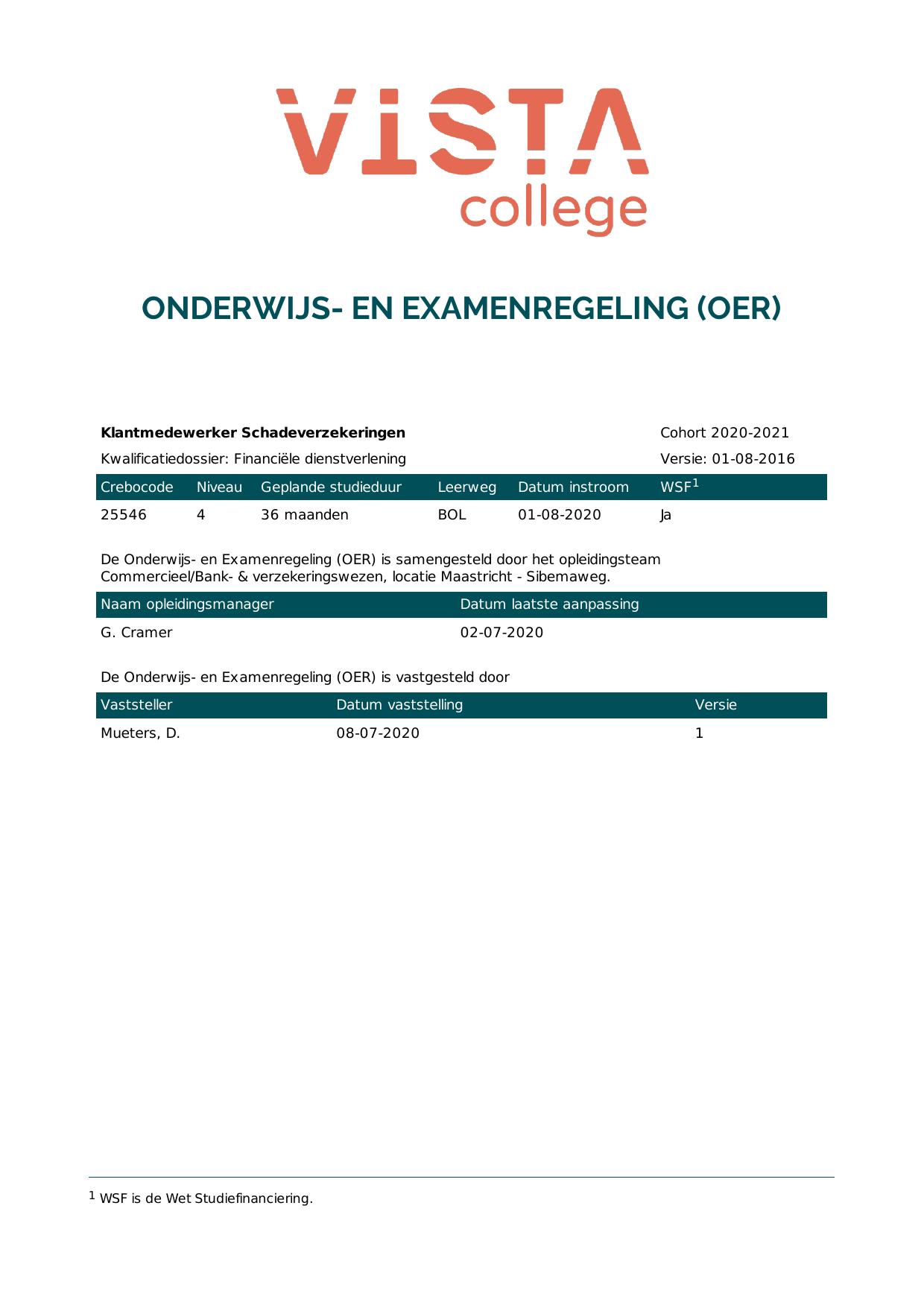 Klantmedewerker Schadeverzekeringen 1B25546BV3V1 in cohort 2020-2021