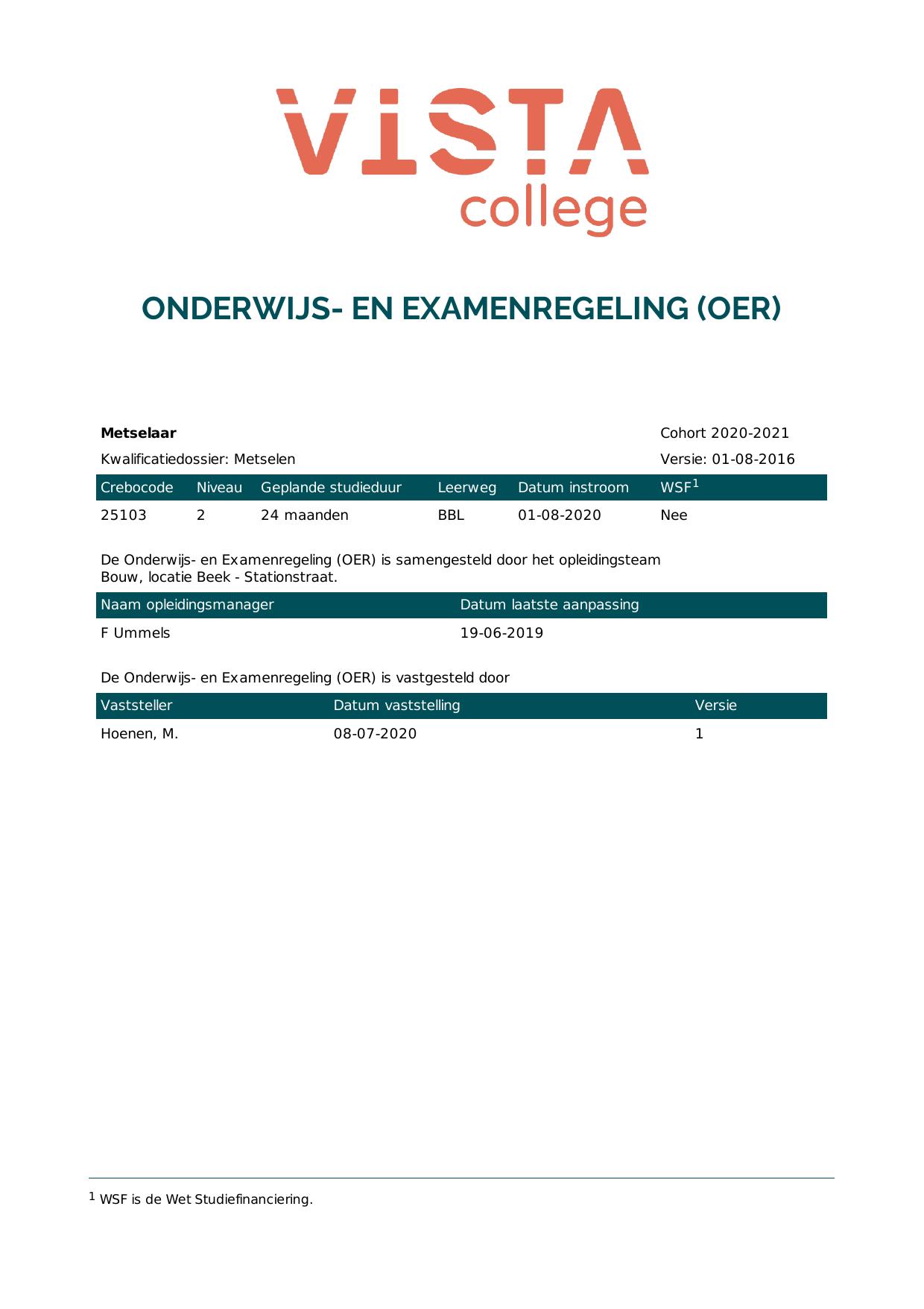 Metselaar 25103B1S in cohort 2020-2021