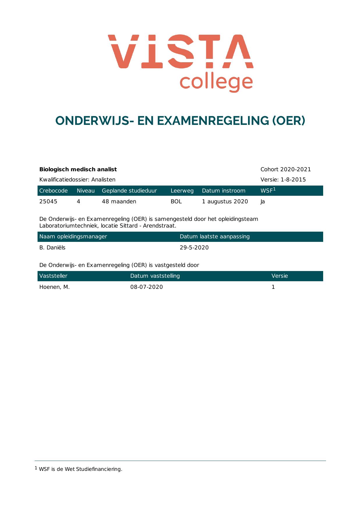 Biologisch medisch analist 25045O1S in cohort 2020-2021