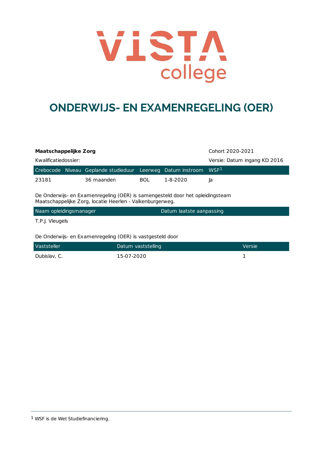 Maatschappelijke Zorg 23181O2S in cohort 2020-2021