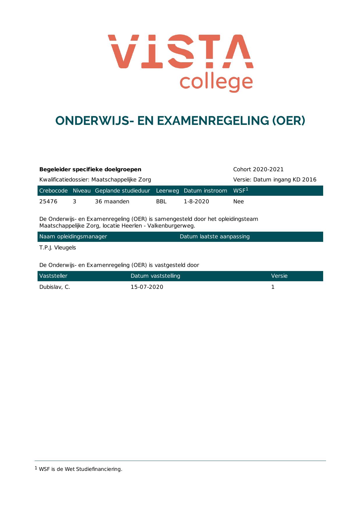 Begeleider gehandicaptenzorg 4M25475BV3V1 in cohort 2020-2021