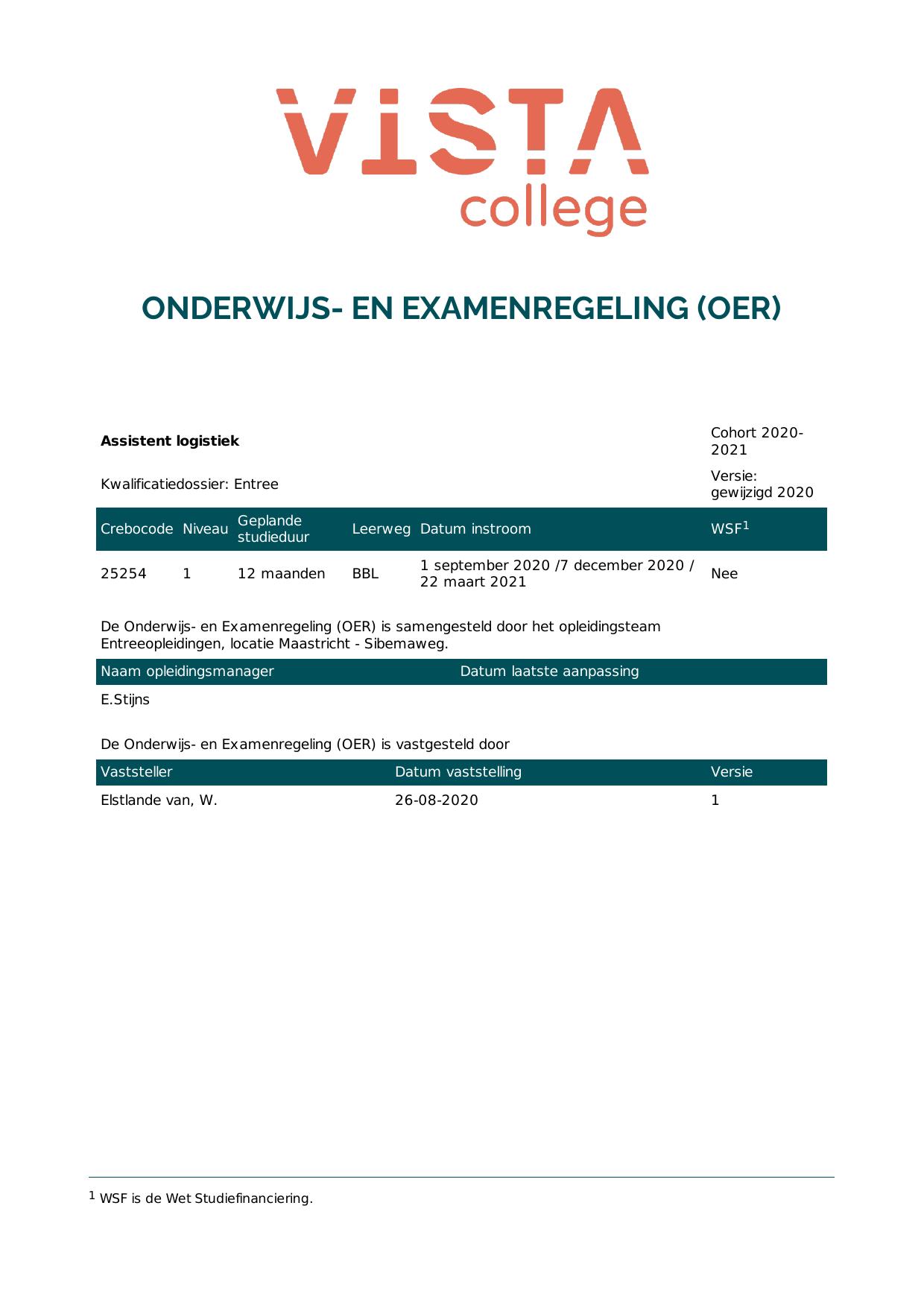 Assistent logistiek 5A25254BV1V1 in cohort 2020-2021