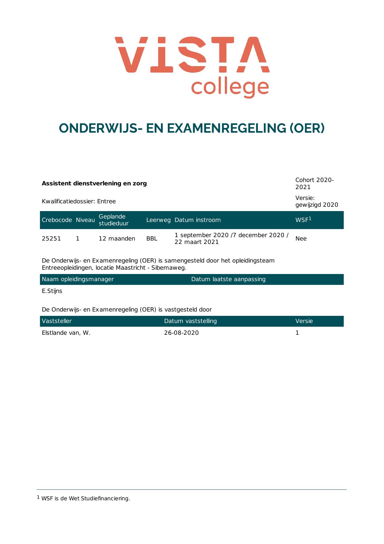 Assistent dienstverlening en zorg 5A25251BB1V1 in cohort 2020-2021