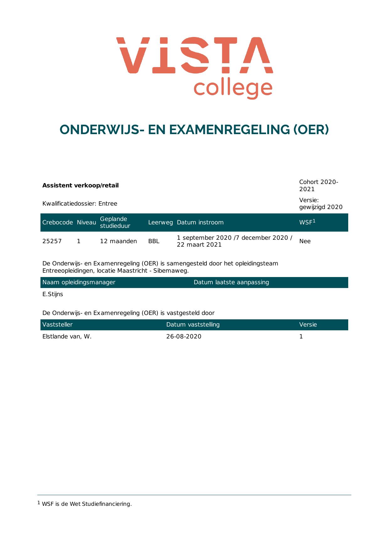 Assistent verkoop/retail 5A25257BB1V1 in cohort 2020-2021