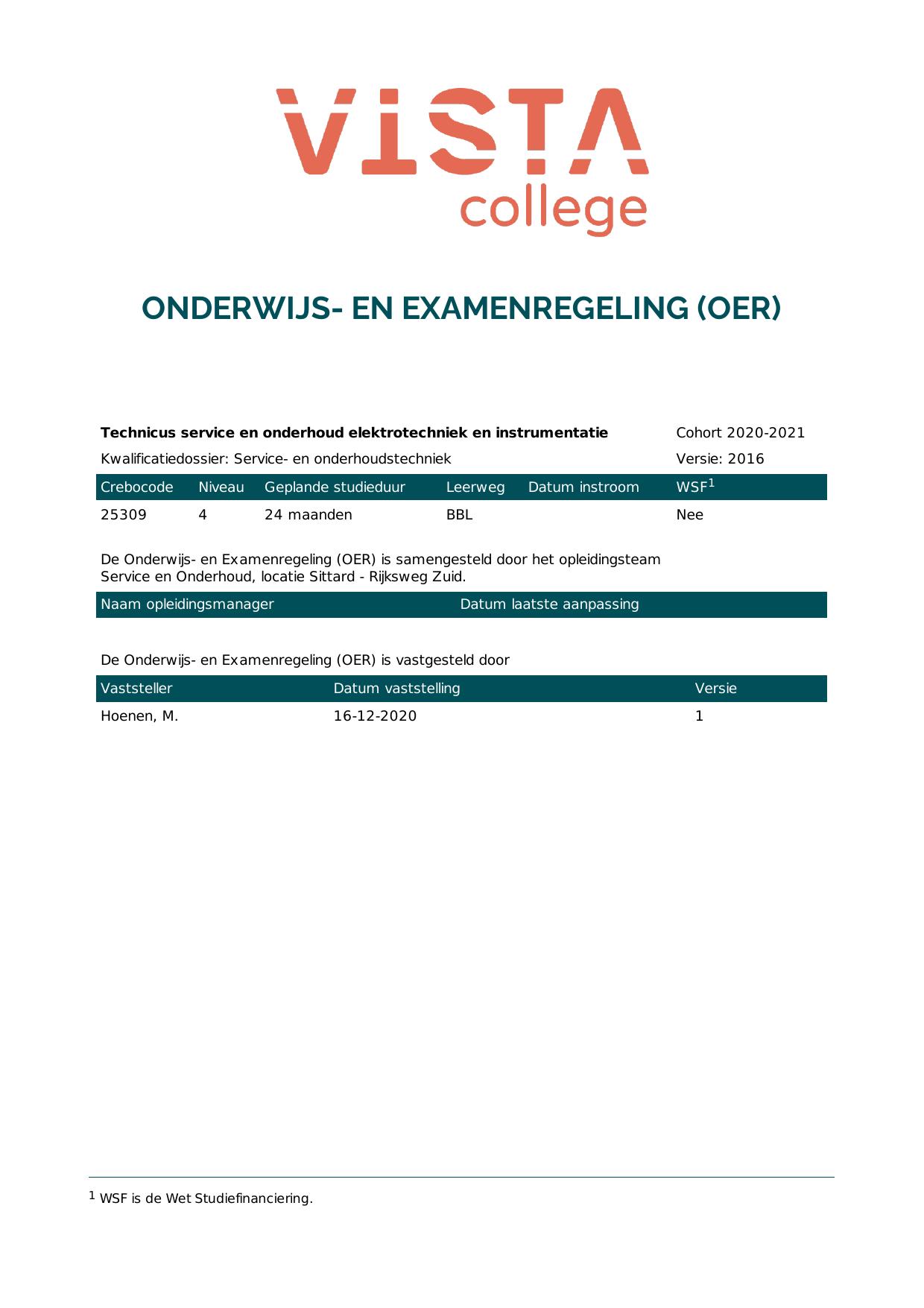 Technicus service en onderhoud werktuigbouw 25310B1S in cohort 2020-2021