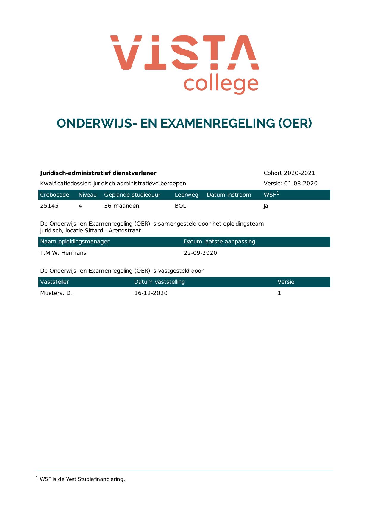 Juridisch-administratief dienstverlener 1J25145BV3V1 in cohort 2020-2021