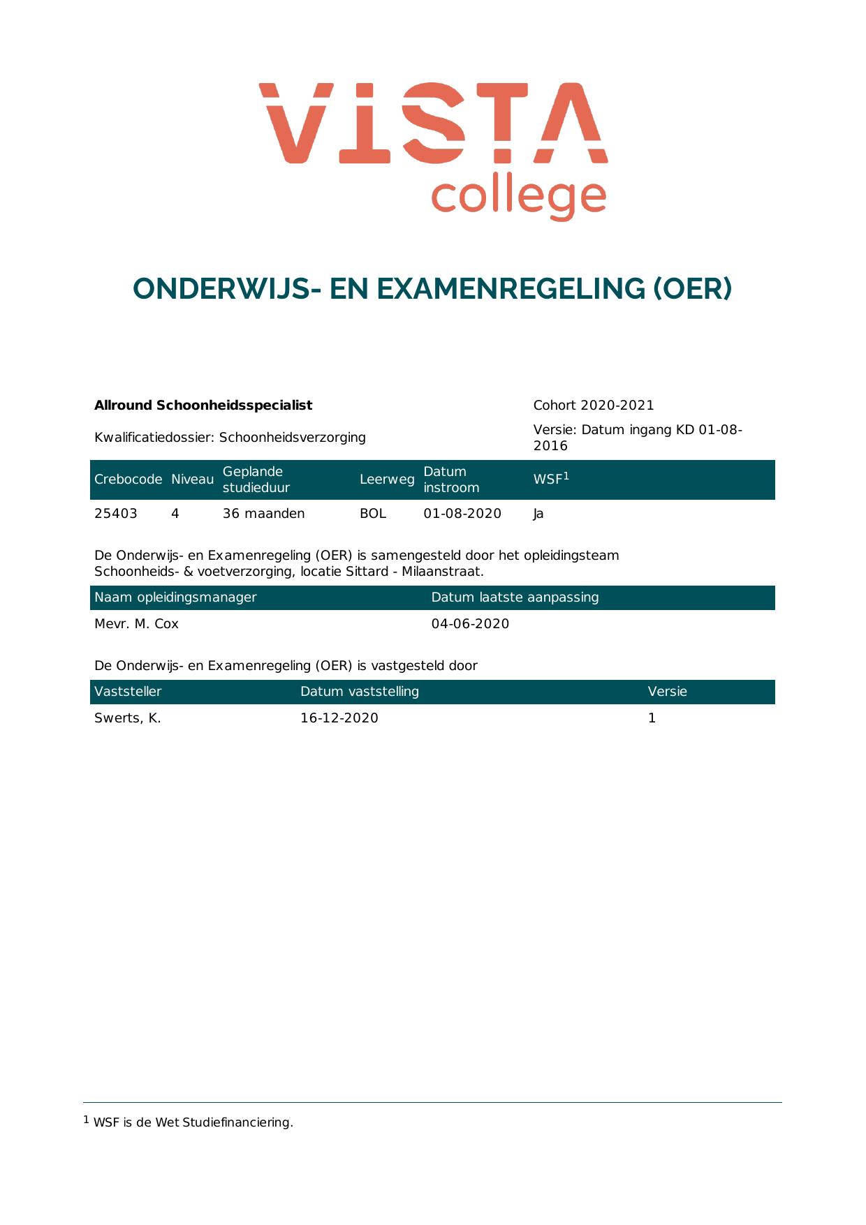 Allround Schoonheidsspecialist 2S25403BV3V1 in cohort 2020-2021