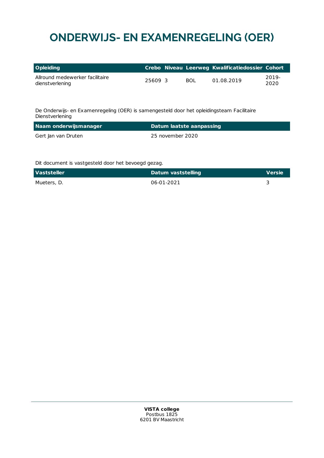 Allround medewerker facilitaire dienstverlening 25609O1S in cohort 2019-2020