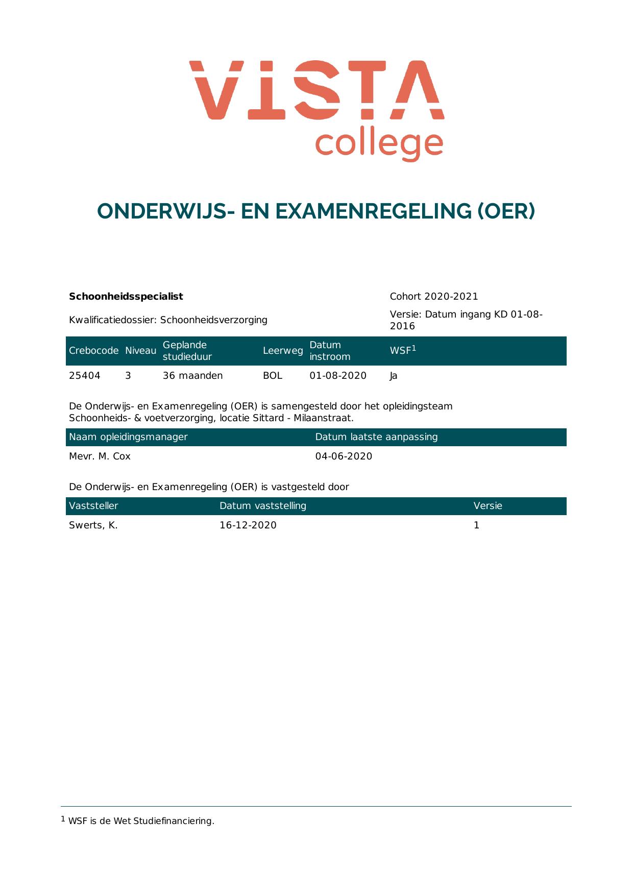 Schoonheidsspecialist 2S25404BV3V1 in cohort 2020-2021