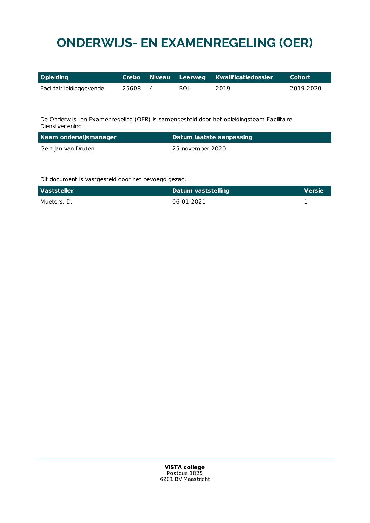 Facilitair leidinggevende 25608O1S in cohort 2019-2020
