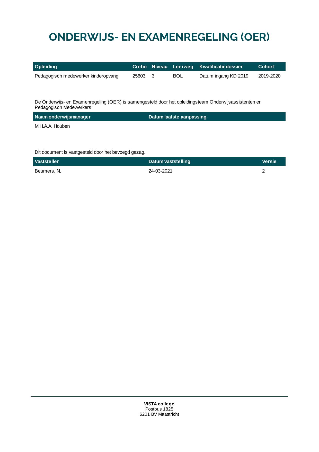 Pedagogisch medewerker kinderopvang 25603O1S in cohort 2020-2021