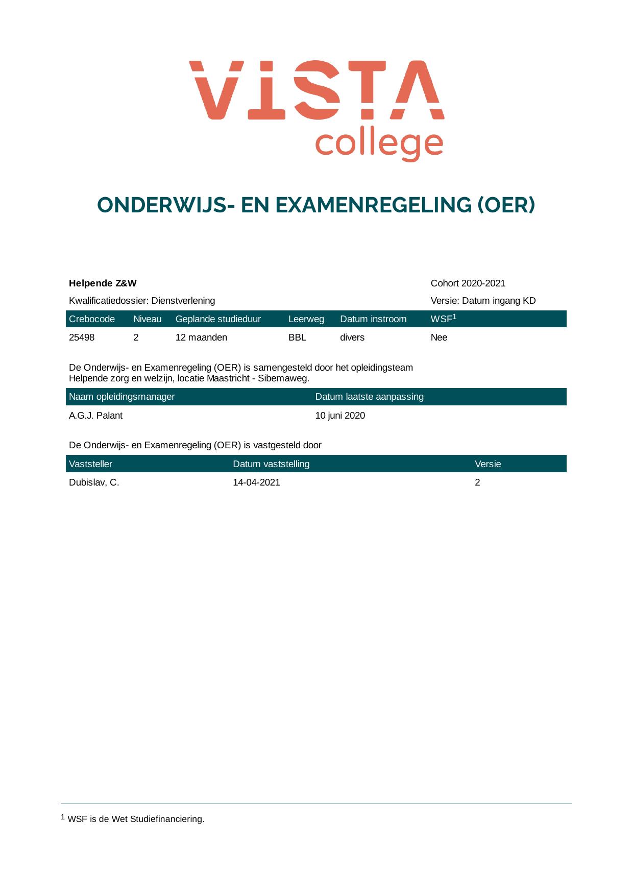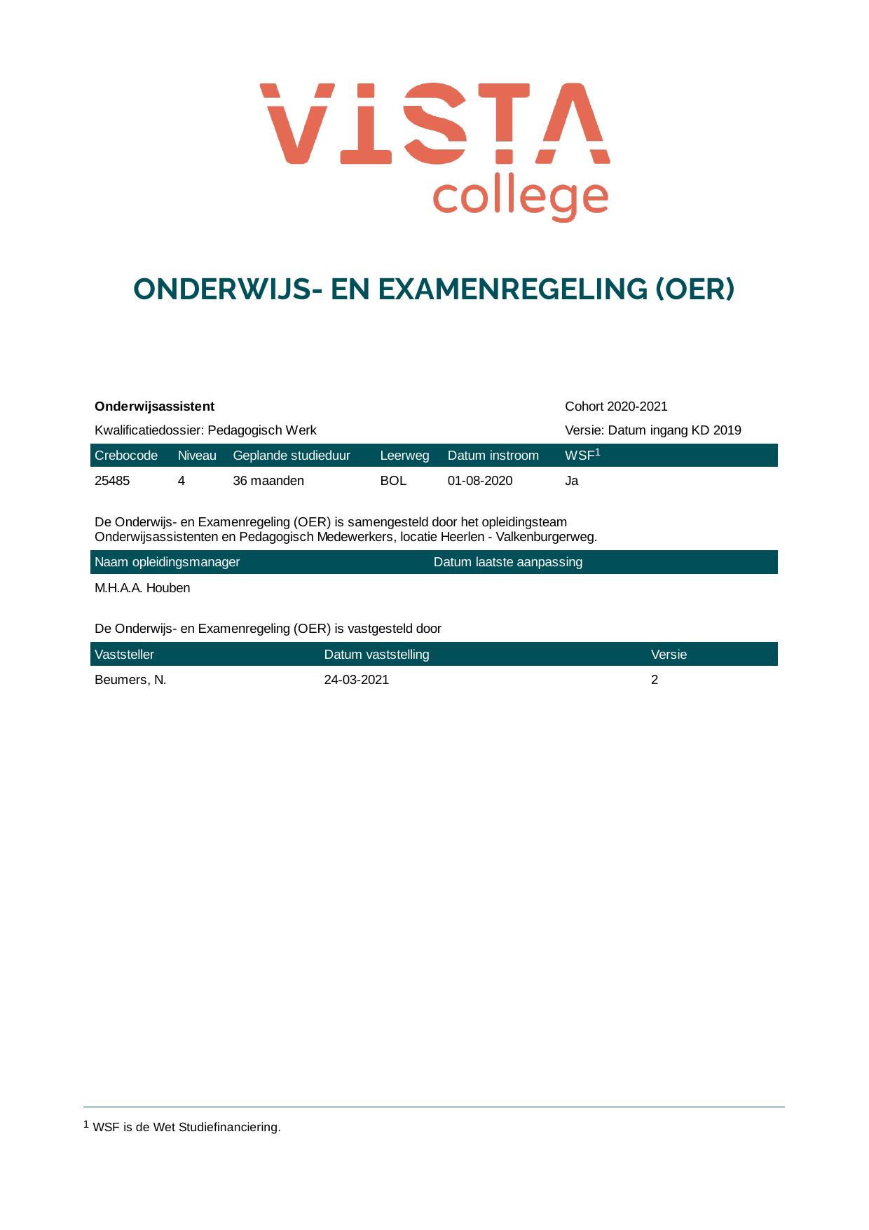 Onderwijsassistent 25485O1S in cohort 2020-2021