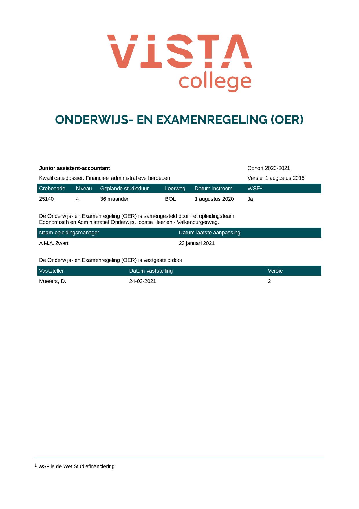 Financieel administratief medewerker 25139O1S in cohort 2020-2021
