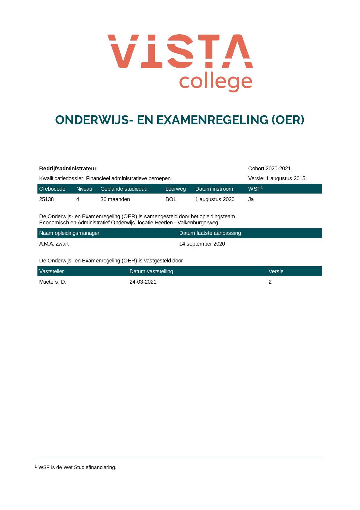 Bedrijfsadministrateur 25138O1S in cohort 2020-2021