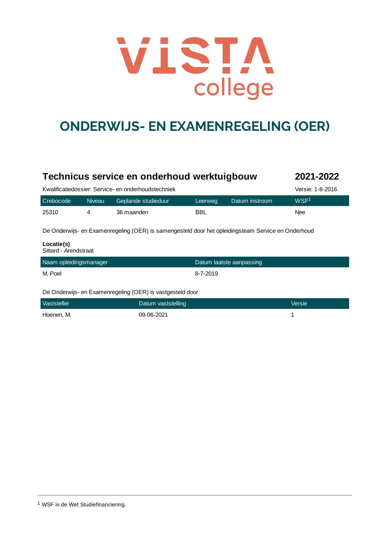 Technicus service en onderhoud werktuigbouw 25310B1S in cohort 2021-2022
