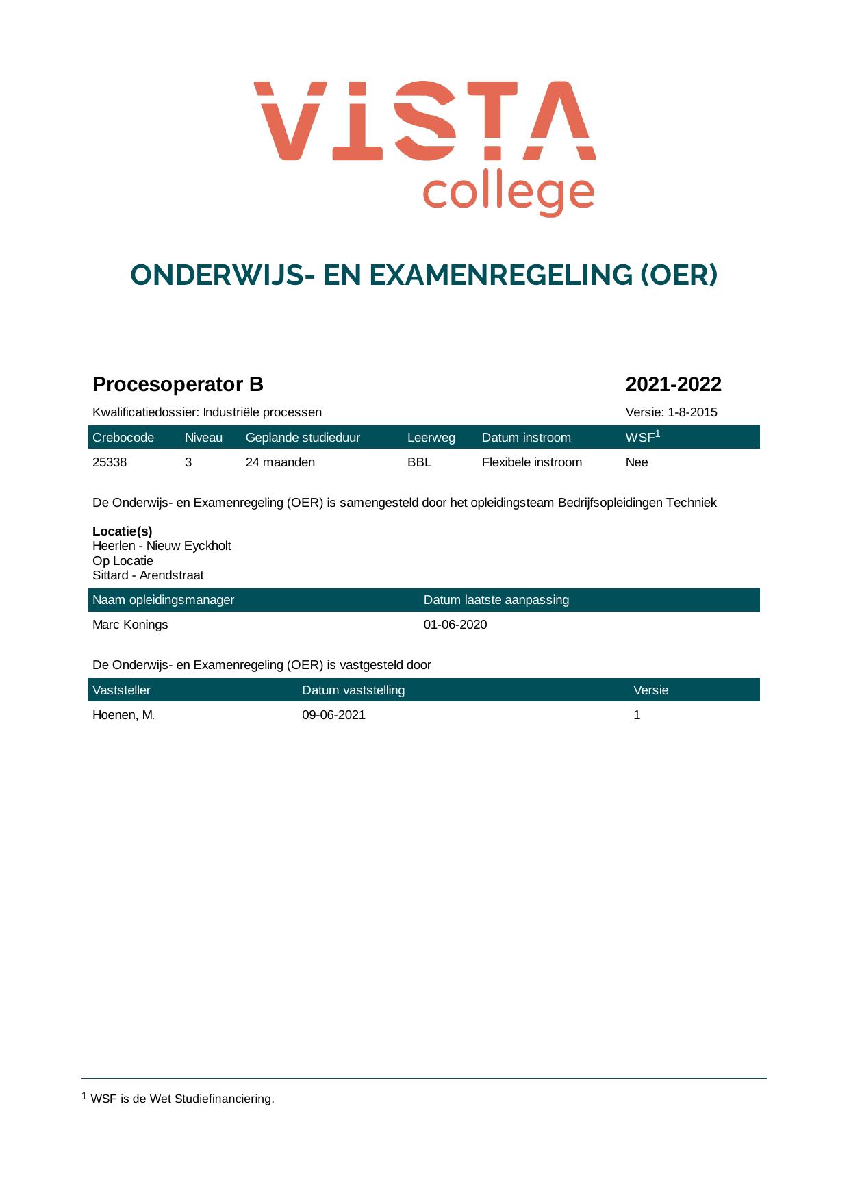 Mechanisch operator B 25336B1E in cohort 2021-2022