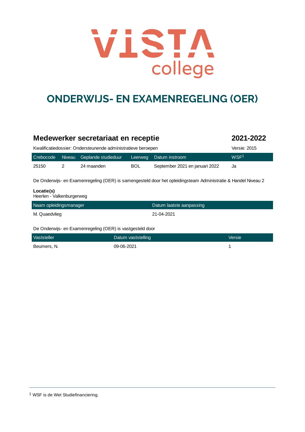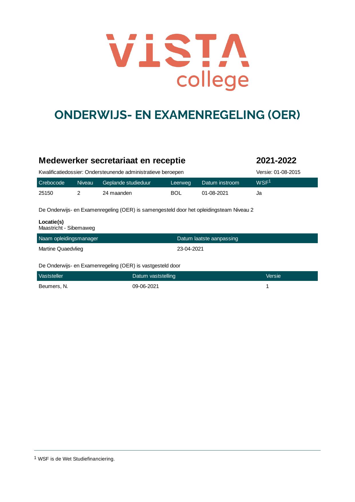 Medewerker secretariaat en receptie 25150O1S in cohort 2021-2022