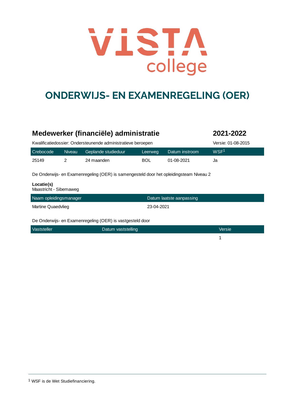 Medewerker (financiële) administratie 1F25149BV2V1 in cohort 2021-2022