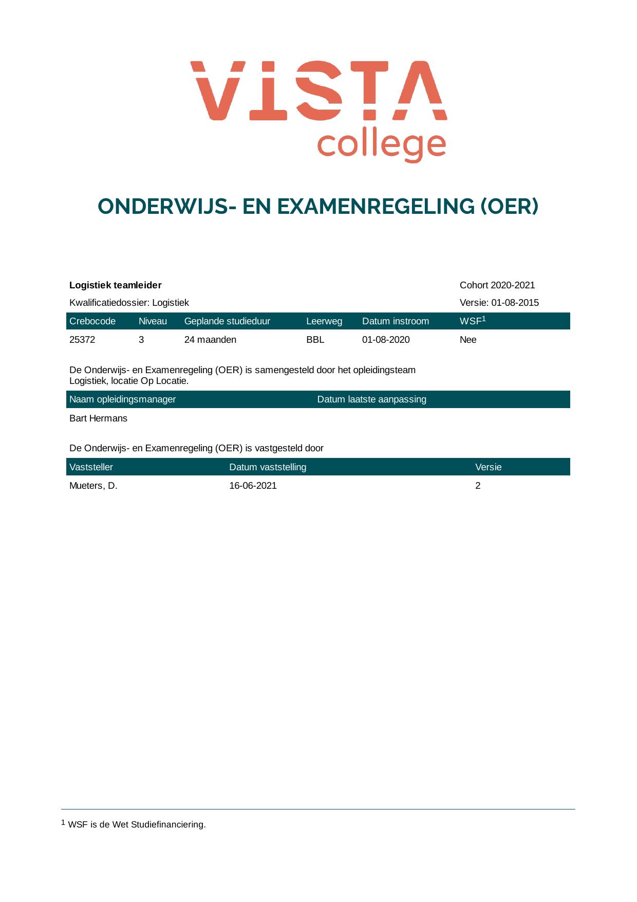 Logistiek teamleider 1L25372BB2V3 in cohort 2020-2021