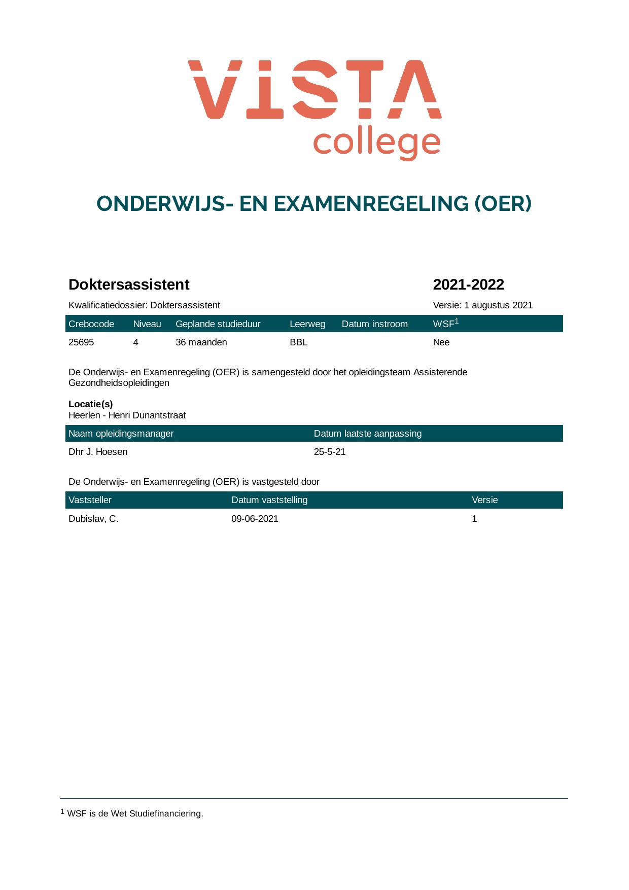 Doktersassistent Flex 25695B1S in cohort 2021-2022