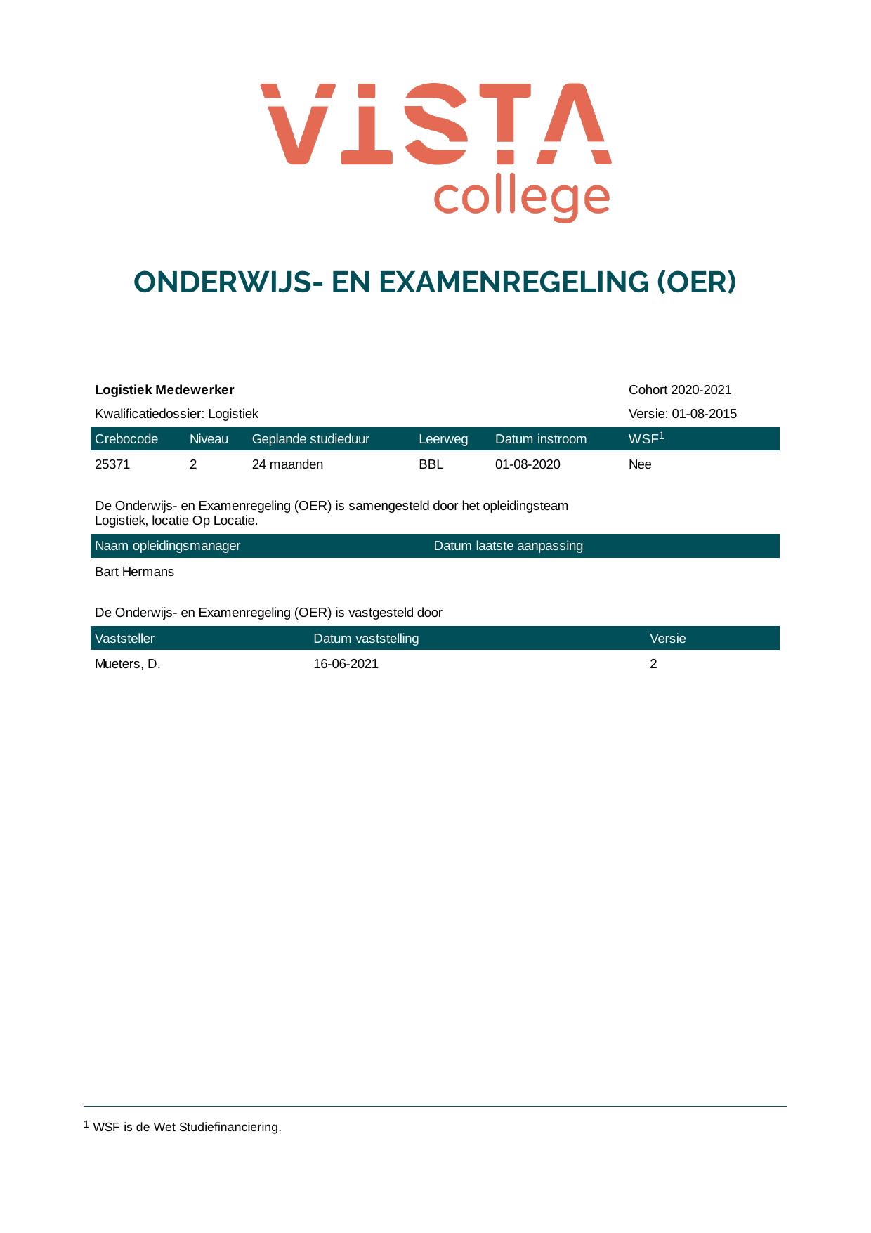Logistiek medewerker 1L25371BV2V1 in cohort 2020-2021