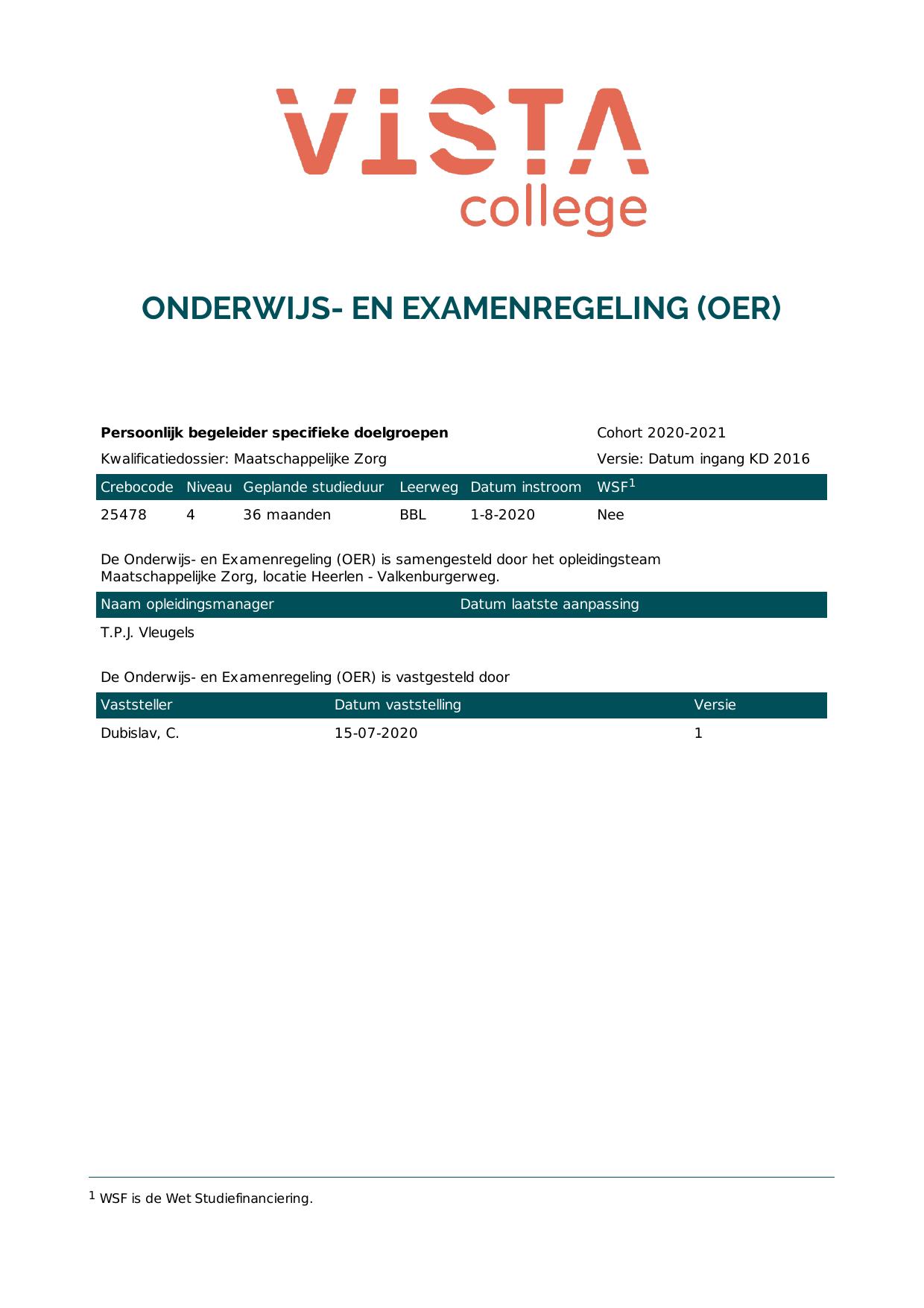Begeleider gehandicaptenzorg 25475O1S in cohort 2020-2021