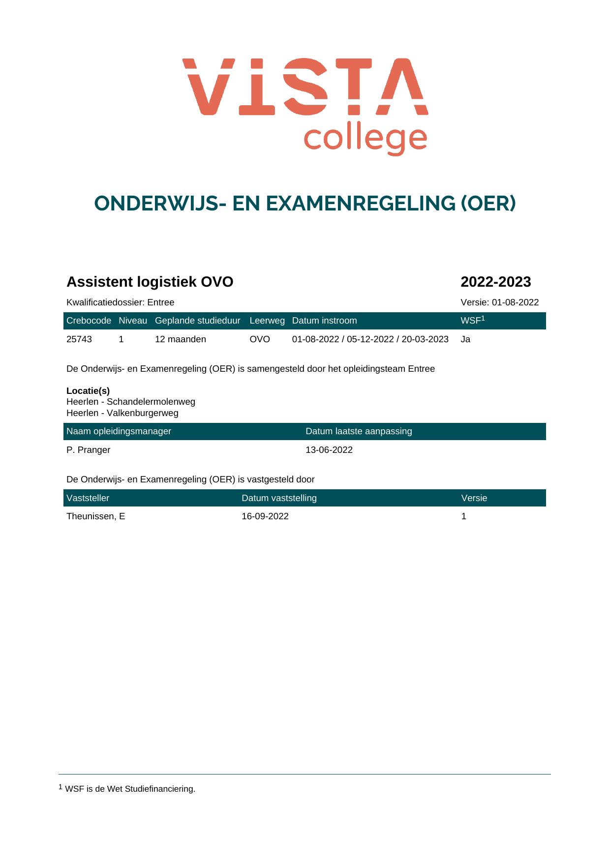 Assistent logistiek OVO 25743OVO in cohort 2022-2023