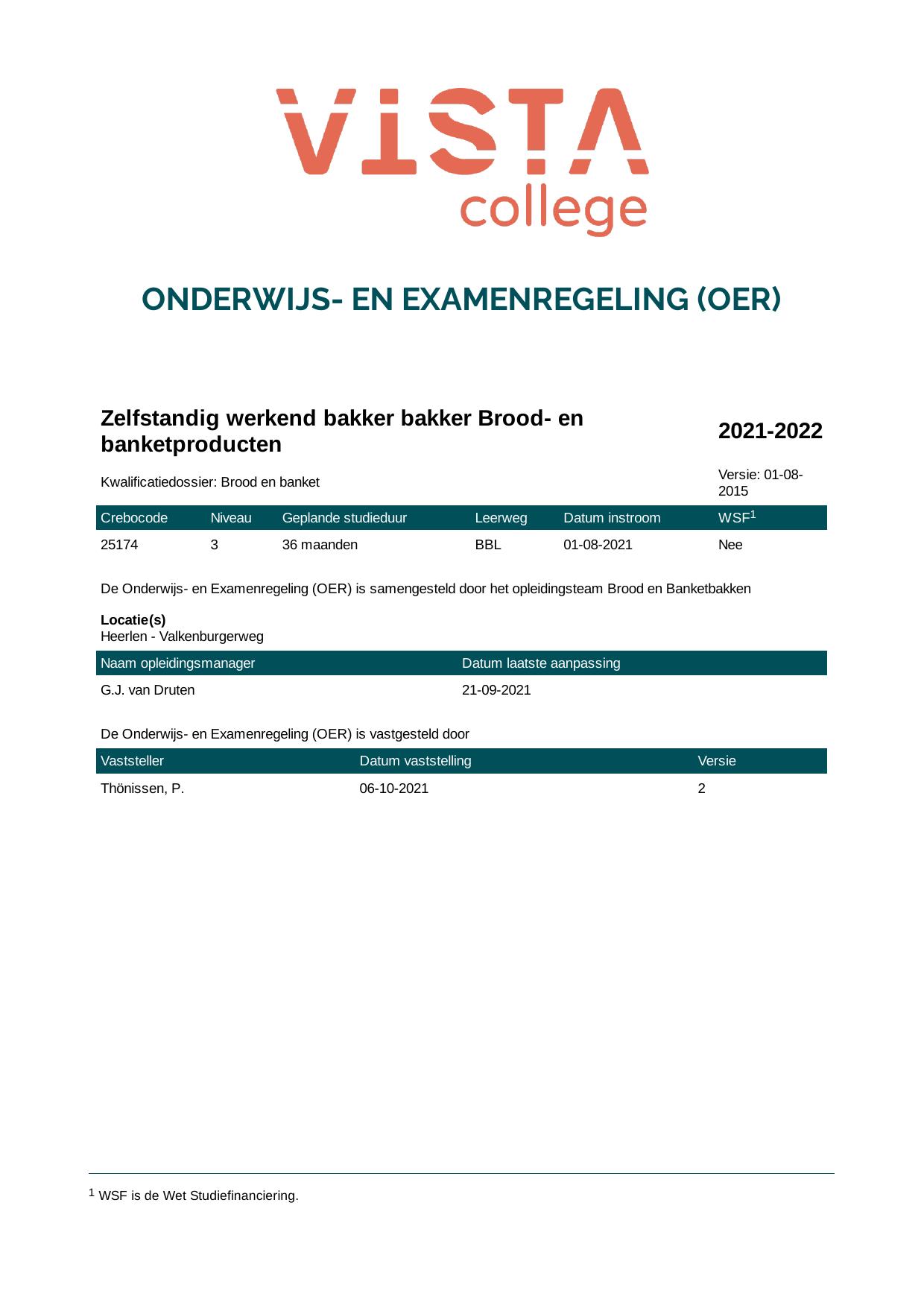 Zelfstandig werkend bakker bakker Brood- en banketproducten 25174B1S in cohort 2021-2022