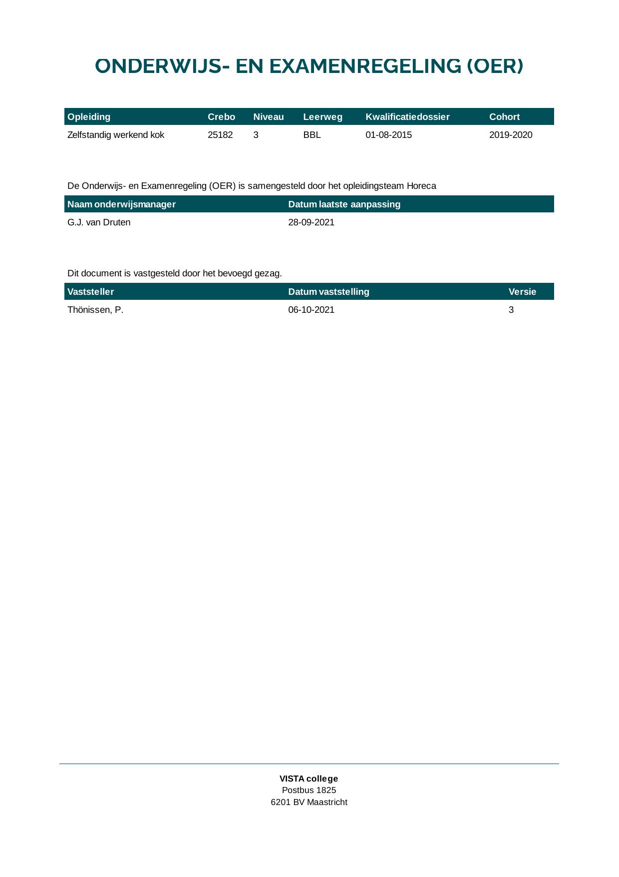 Zelfstandig werkend kok 25182B1S in cohort 2019-2020
