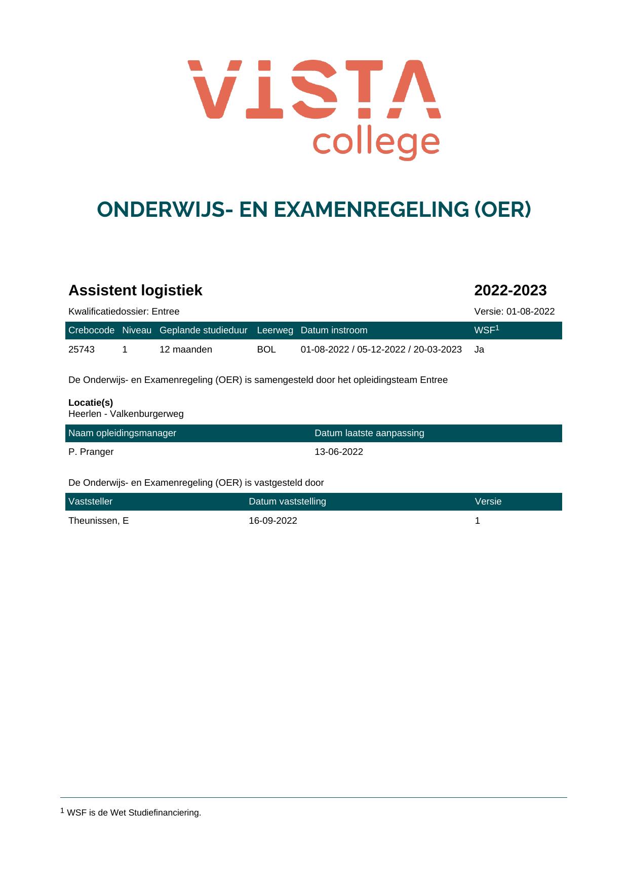 Assistent logistiek 25743O1S in cohort 2022-2023