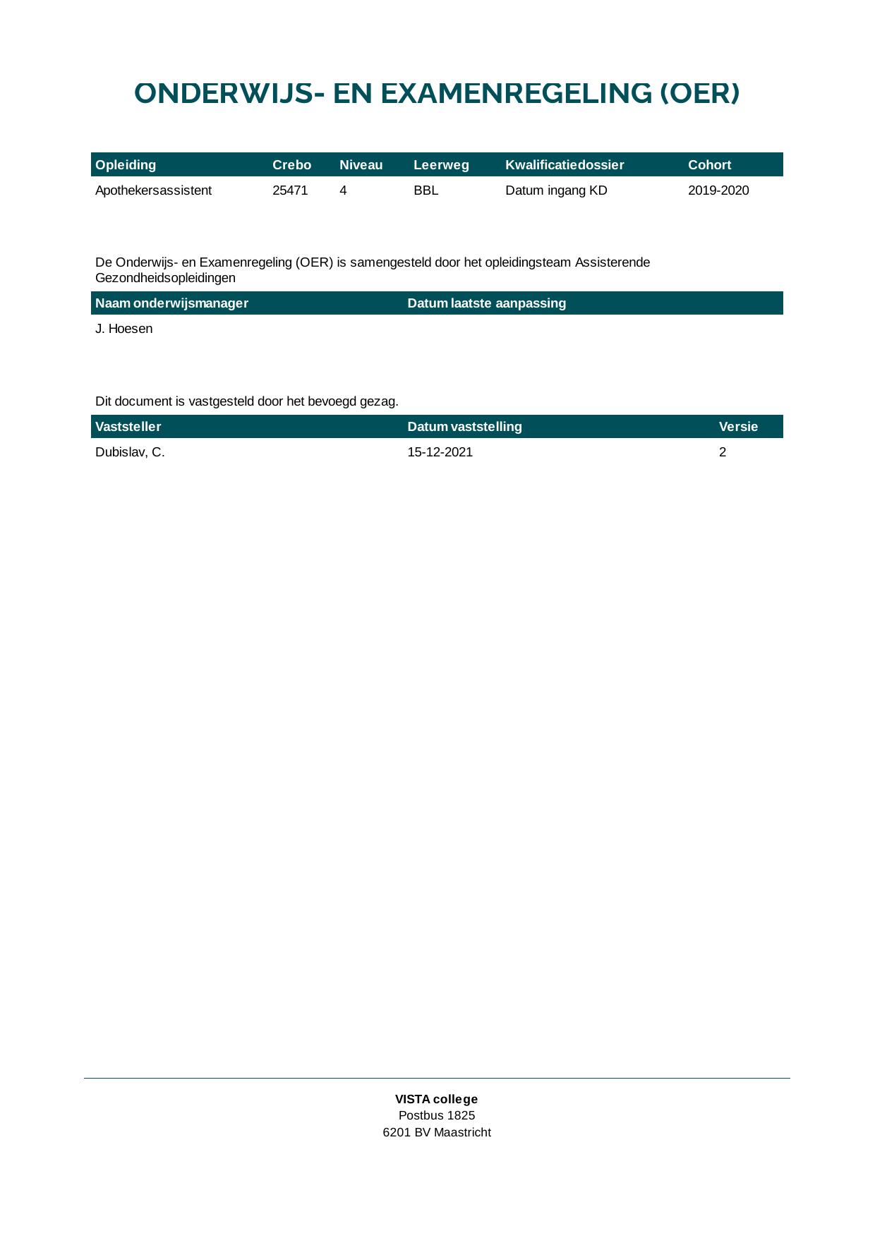 Apothekersassistent 25471B1S in cohort 2019-2020