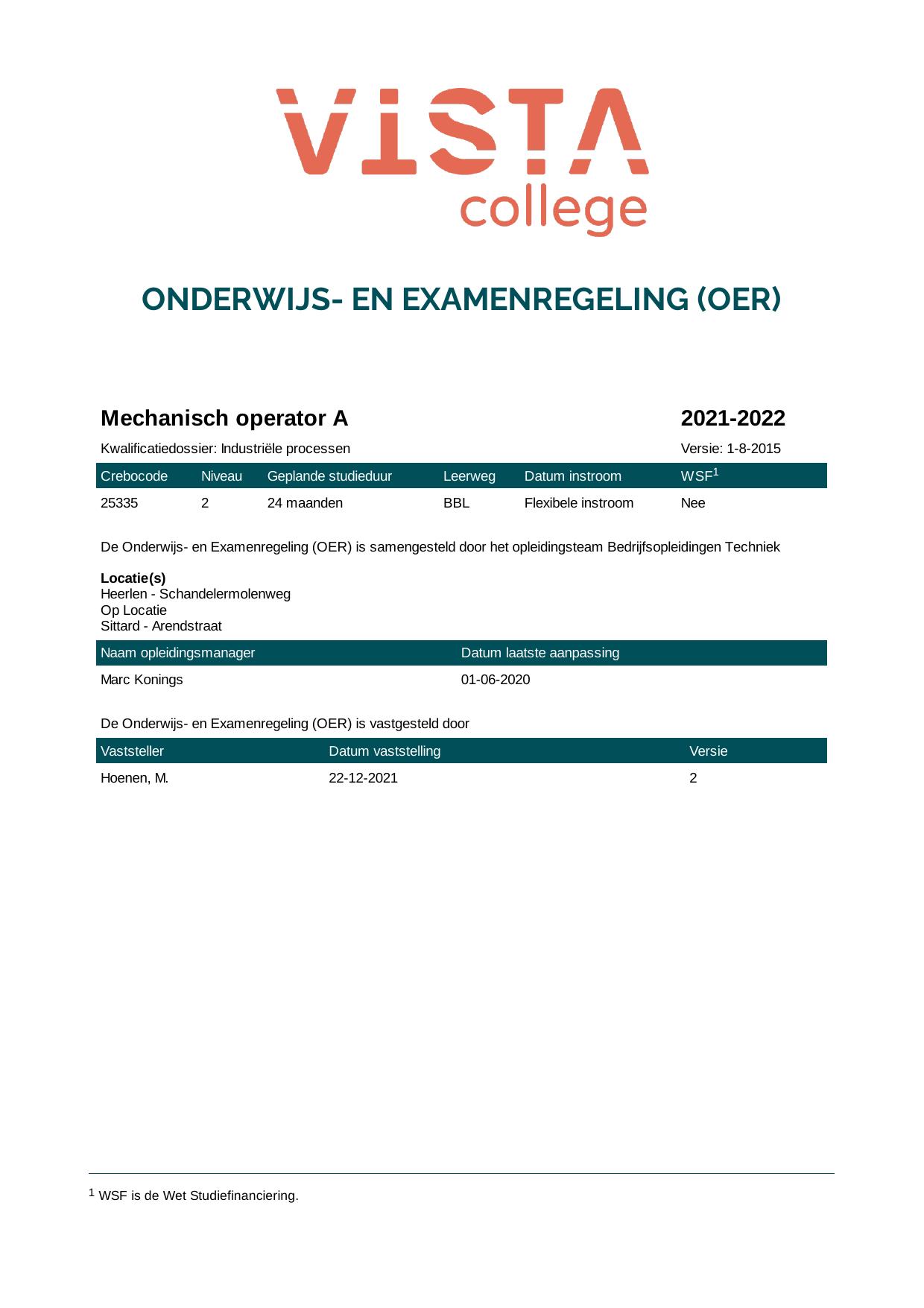 Mechanisch operator A 25335B1E in cohort 2021-2022