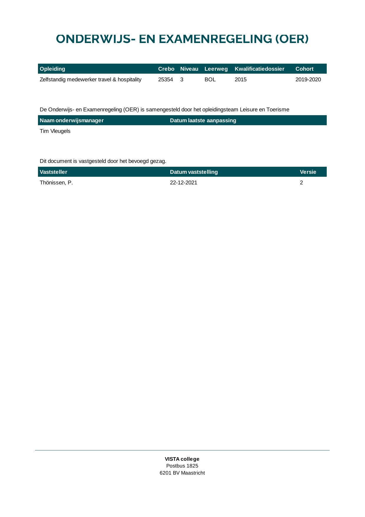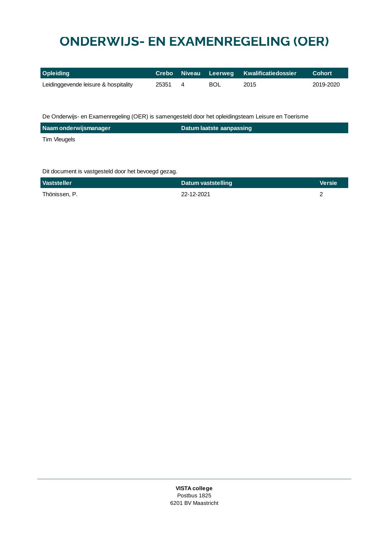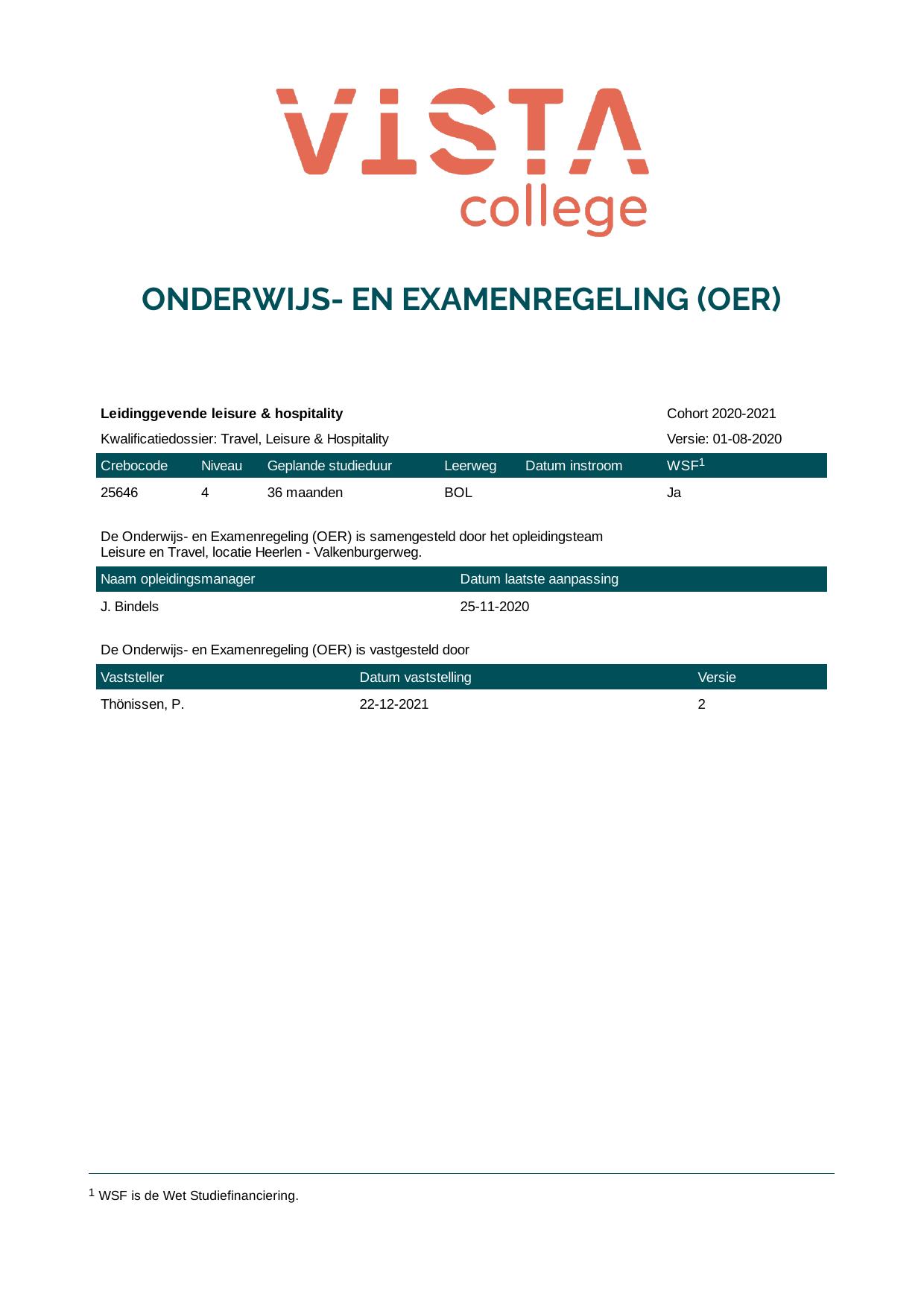 Leidinggevende leisure & hospitality 25646O1S in cohort 2020-2021