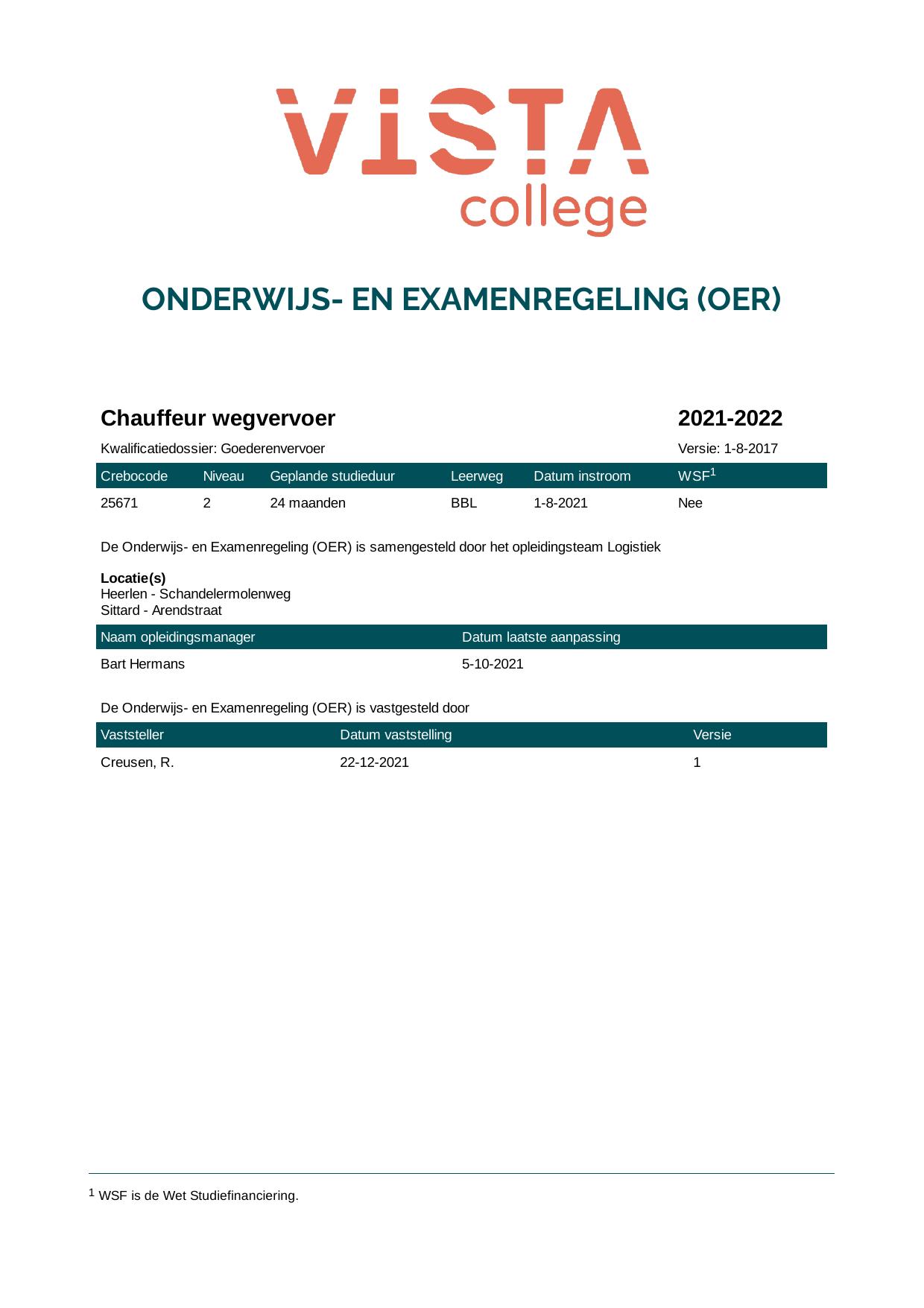 Chauffeur wegvervoer 25671B1S in cohort 2021-2022