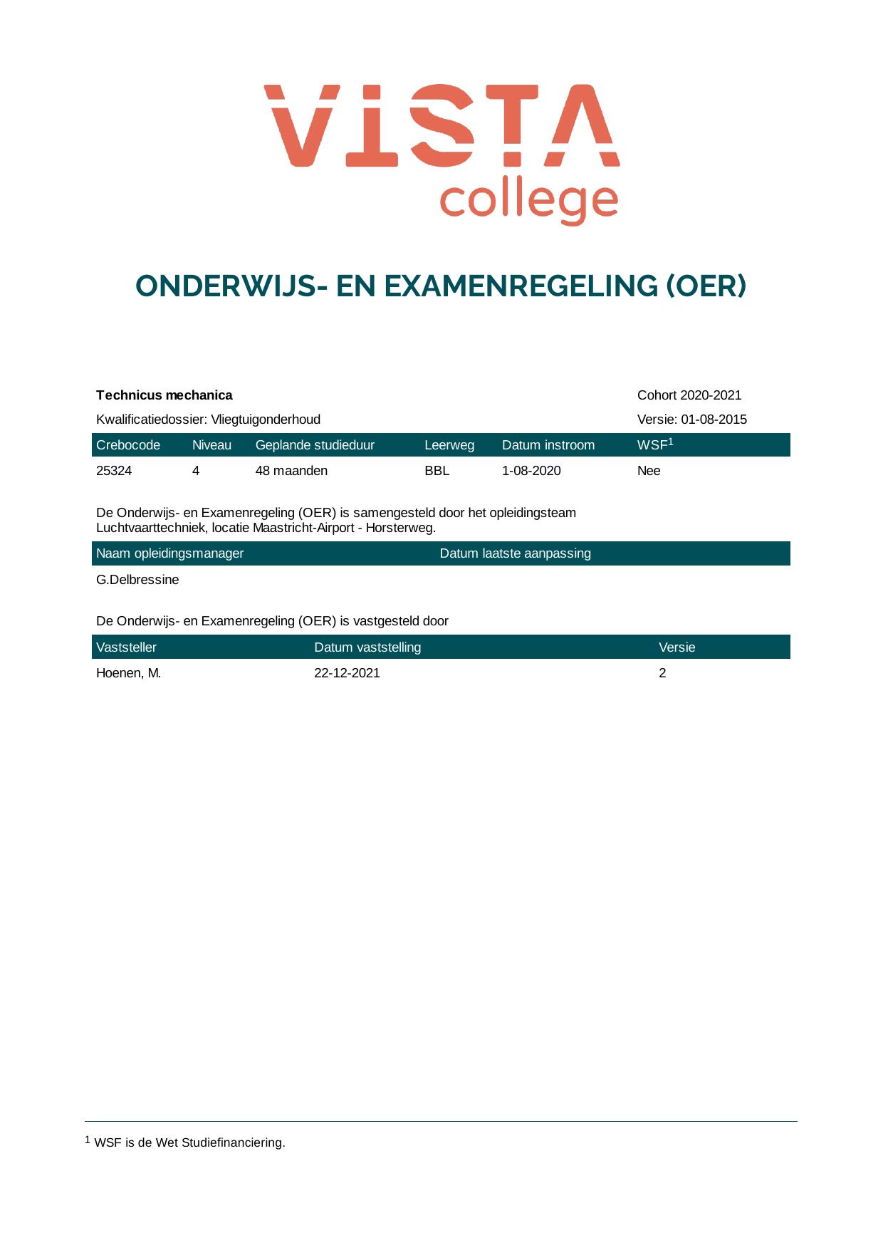 Technicus Mechanica 25324O1S in cohort 2020-2021