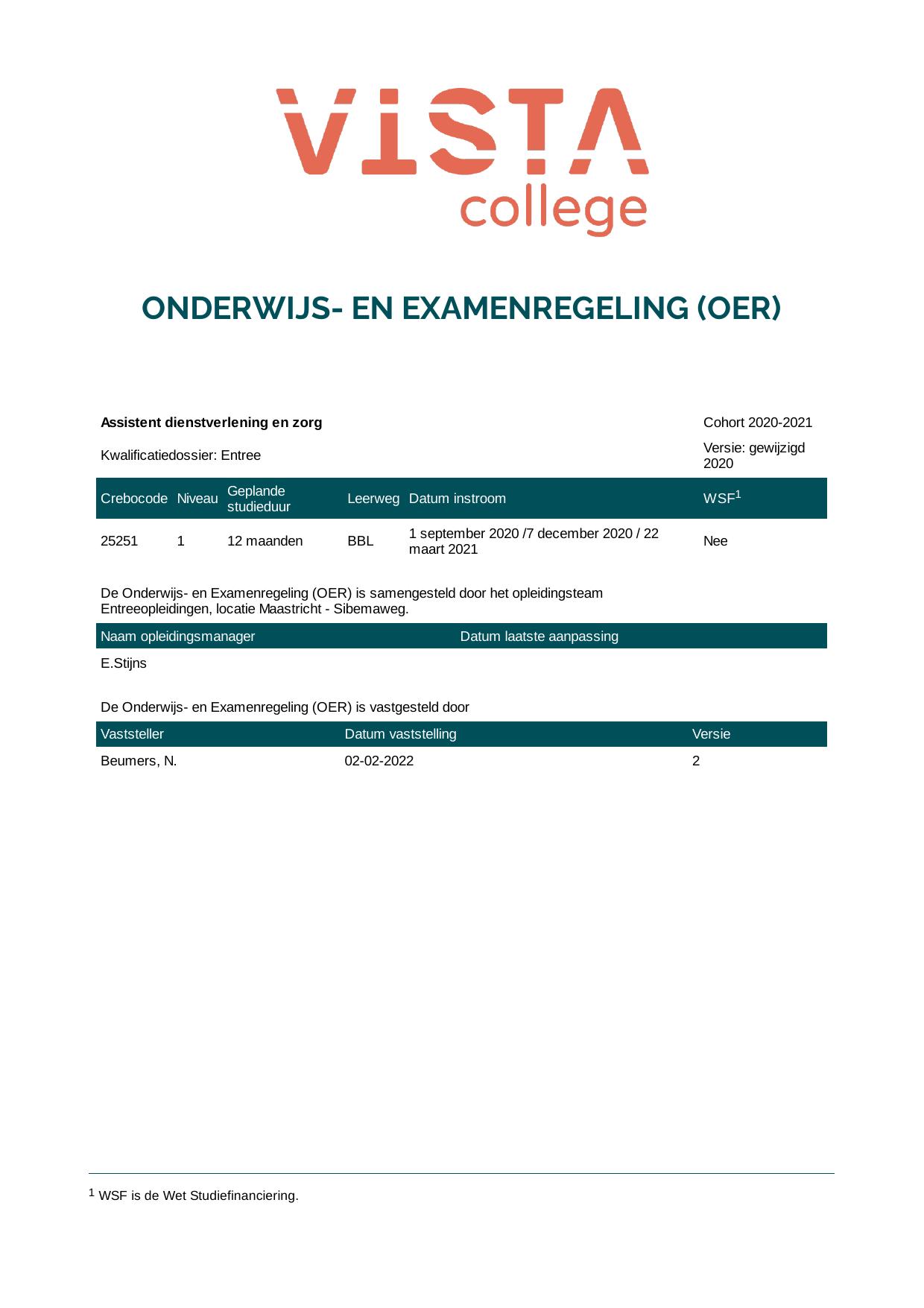 Assistent dienstverlening en zorg 5A25251BB1V1 in cohort 2020-2021