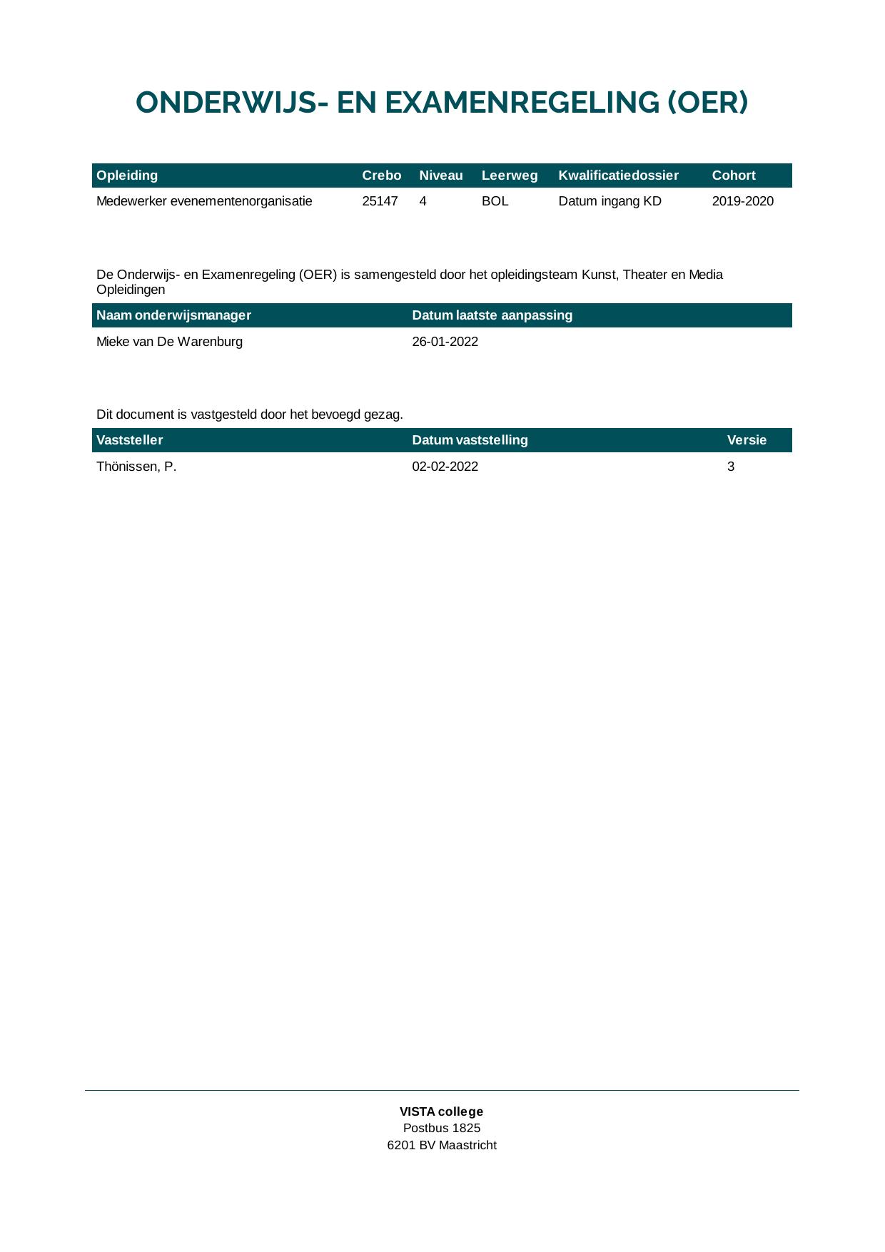 Medewerker evenementenorganisatie 25147O1S in cohort 2019-2020