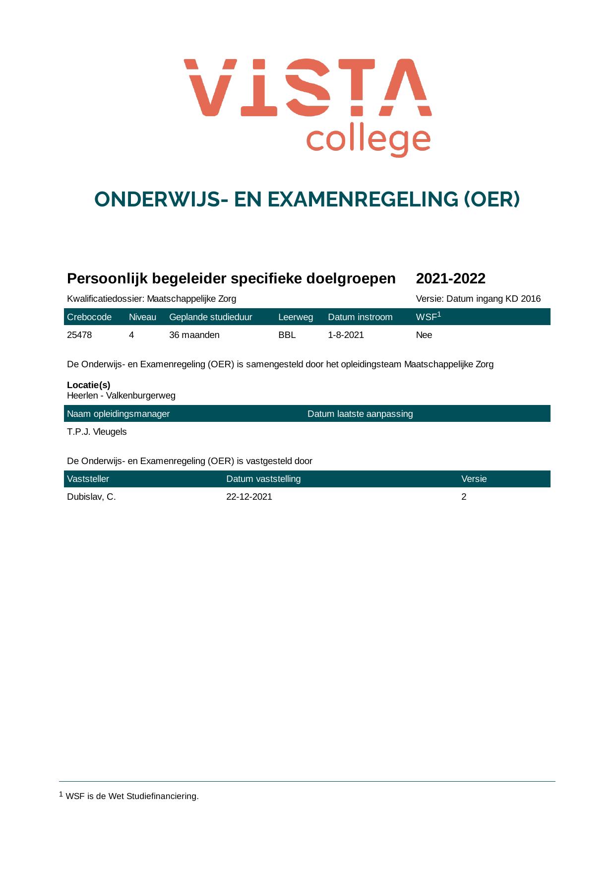 Persoonlijk begeleider specifieke doelgroepen 25478B1S in cohort 2021-2022