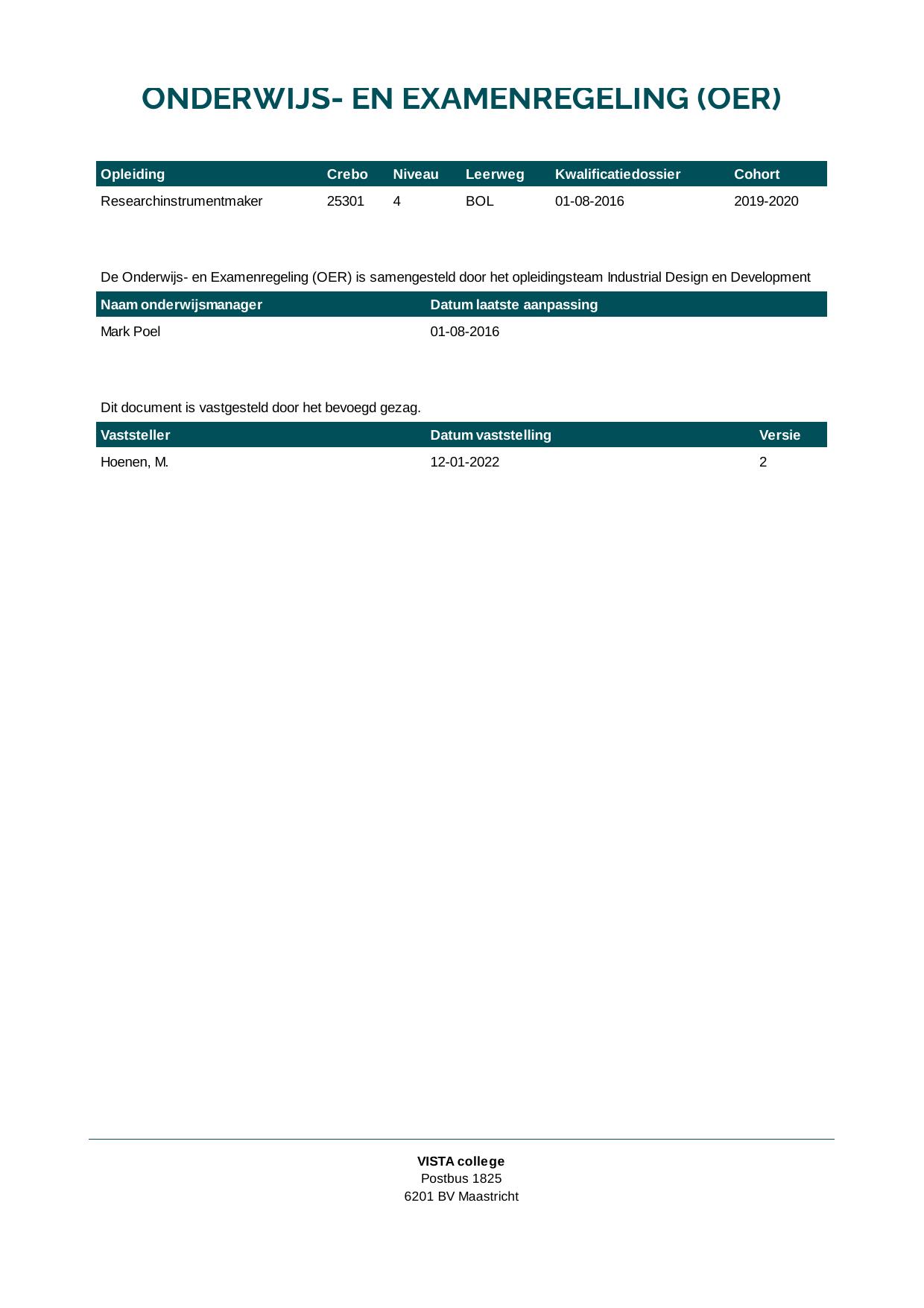 Researchinstrumentmaker 25301O1S in cohort 2019-2020