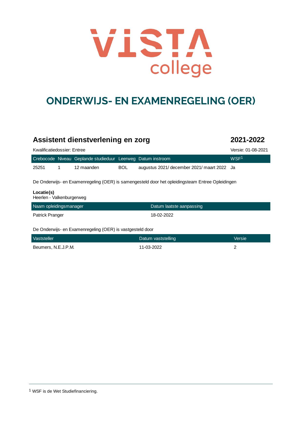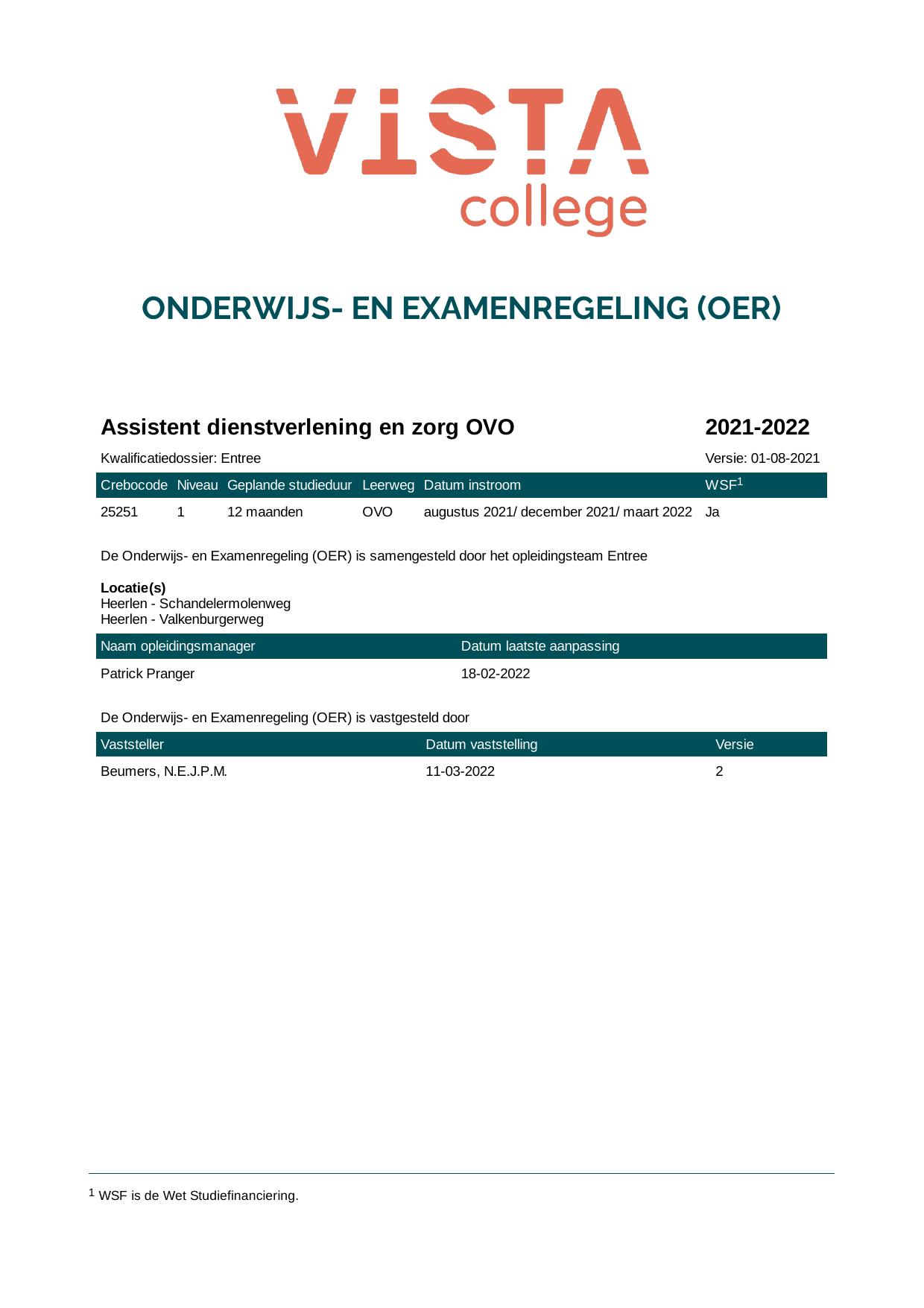 Assistent dienstverlening en zorg OVO 25251OVO in cohort 2021-2022