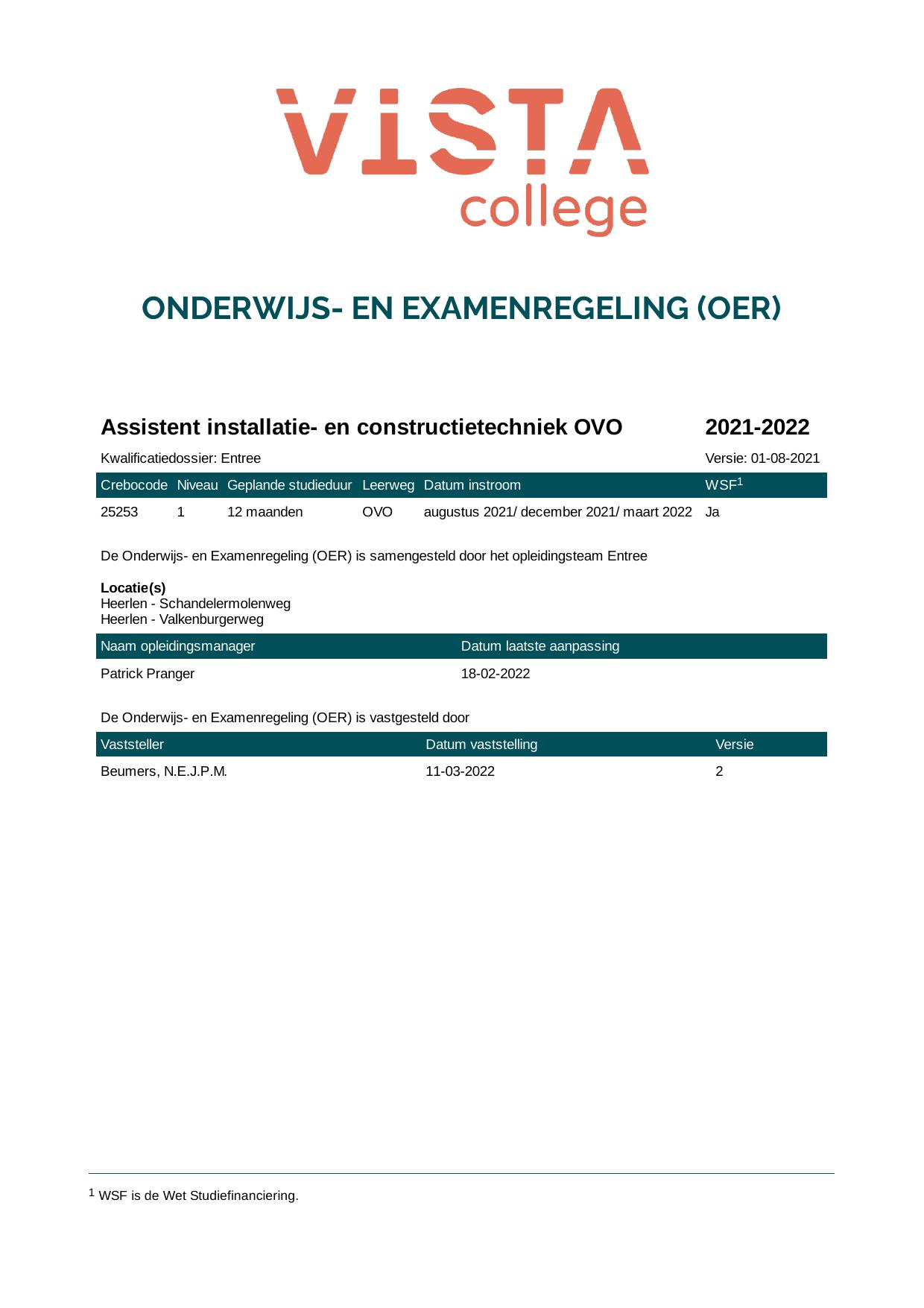 Assistent installatie- en constructietechniek OVO 25253OVO in cohort 2021-2022
