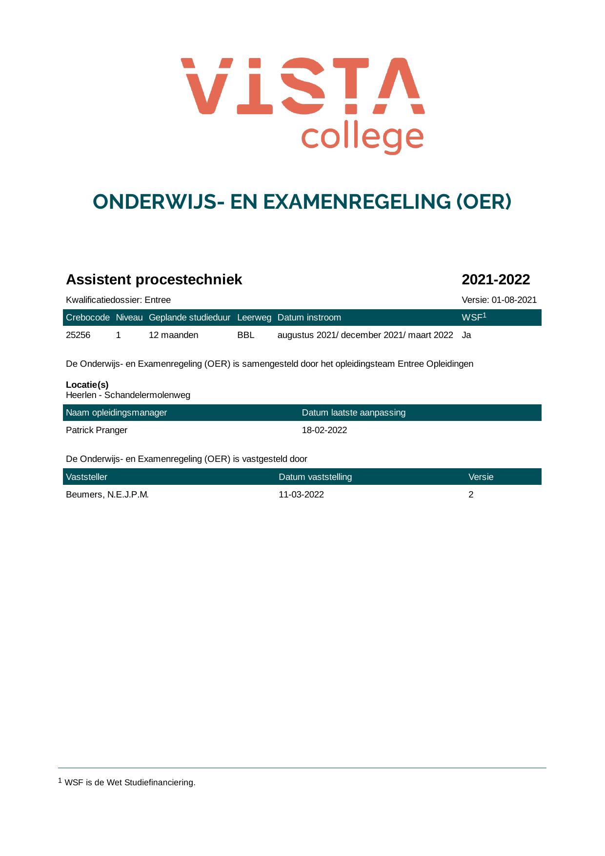 Assistent bouwen, wonen en onderhoud 25250O1S in cohort 2021-2022